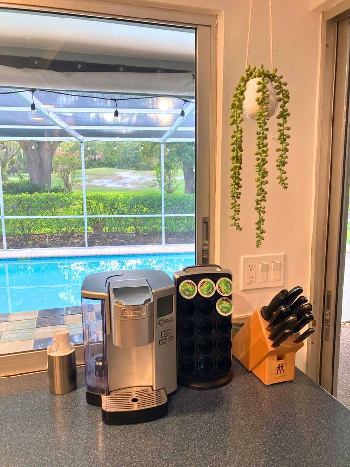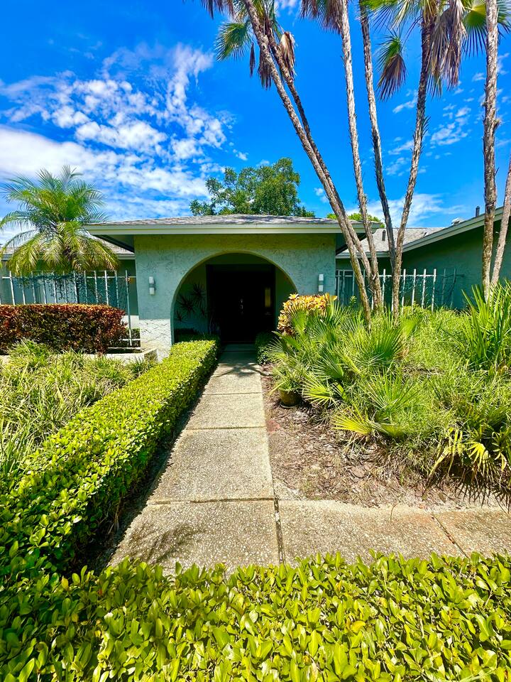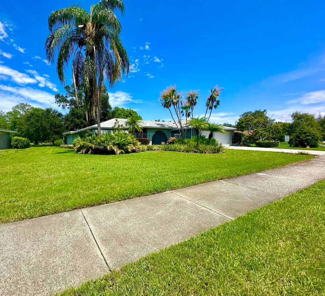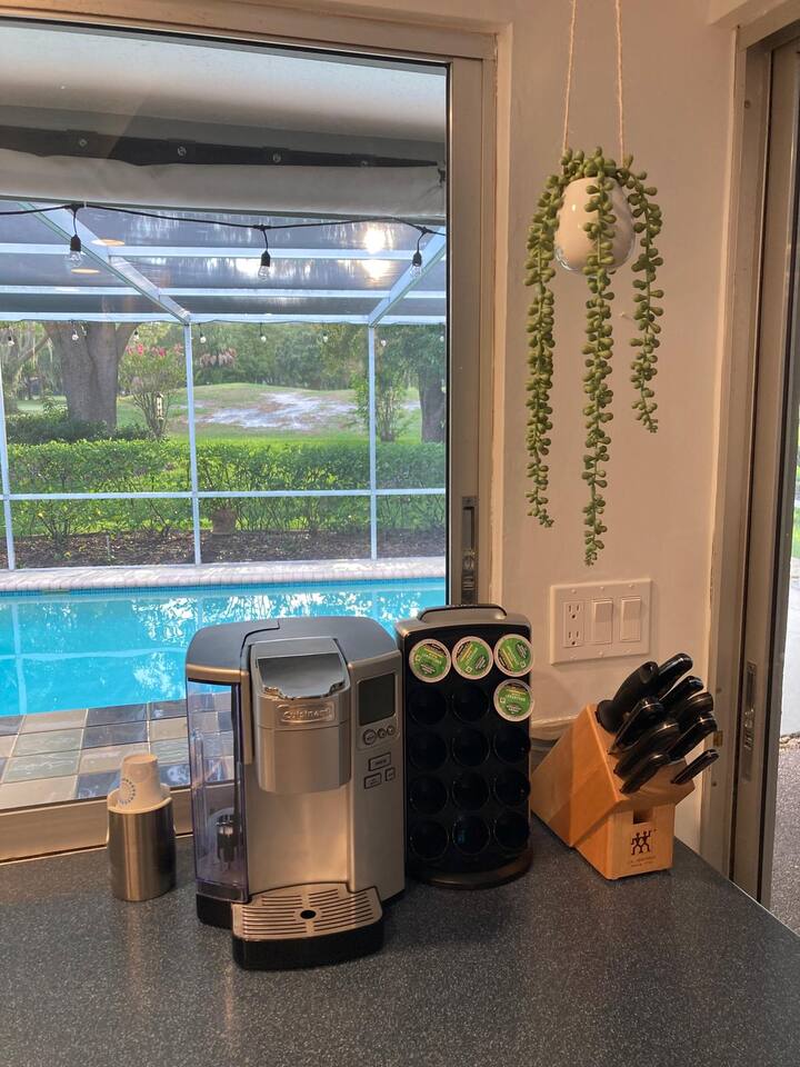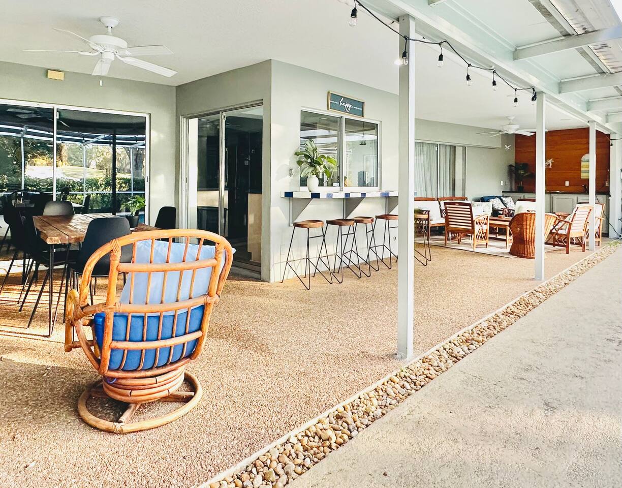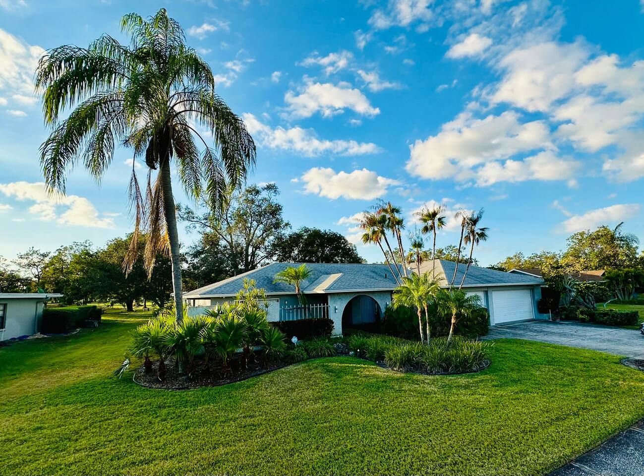 Welcome to our spacious open concept living, kitchen, and dining area. Here, you'll discover everything you need for relaxation and entertainment. Whether you prefer sinking into our plush sofa, gathering around the dining table for a meal, enjoying a lively game of foosball with family and friends, or simply relaxing on the hot tub while enjoying the panoramic view of the pool and golf course, our space is designed to cater to your comfort and enjoyment. Our second living room is a haven of comfort and leisure. It showcases a beautiful grand piano, inviting you to create music and unwind in a serene atmosphere. The room offers a picturesque view of the pool, adding tranquility to your experience. Ample seating options abound with multiple cozy sofas, ensuring everyone can relax and socialize comfortably. Furthermore, the living room offers additional sleeping arrangements: one sofa bed that accommodates 2 guests and another futon that can accommodate 1 guest. Step into our well-appointed kitchen, where cooking becomes a delight! Our space is fully equipped with all the essentials: refrigerator, oven/stove, dishwasher, microwave, blender, coffee maker, toaster, and much more, ensuring you have everything you need for effortless meal preparation. The inviting ambiance is ideal for family gatherings, boasting two dining tables—one indoors accommodating 6 guests and one outdoors accommodating 6 guests —that comfortably seat twelve guests in total. Additionally, we have a breakfast island bar equipped with 6 bar stools, perfect for quick morning meals. Our master bedroom features a luxurious king-size bed with a nightstand, bedside lamp, a TV, and a ceiling fan. A full-length mirror and spacious walk-in closet offer convenience, while a dedicated desk provides a comfortable workspace or simply to enjoy pampering yourself with the natural lighting from Florida's sunshine. The ensuite bathroom provides privacy and luxury. Enjoy direct access to the outdoor hot tub and pool, seamlessly blending indoor comfort with outdoor relaxation. Whether you're resting indoors or enjoying the amenities outside, our master suite is designed for your comfort and enjoyment. Moving to our second bedroom, you'll find a comfortable queen-size bed accompanied by a TV for entertainment, a bedside lamp, nightstand, dresser, shelves, full-length mirror, and a generous closet, ensuring a serene and restful environment. Additionally, this bedroom has a direct access to one of the bathrooms. Bedroom three offers a serene atmosphere with its king-size bed and thoughtful addition of a baby crib, along with a bedside lamp and ample closet space. Bedroom four continues the theme of comfort and convenience with its king-size bed, nightstand with bedside lamp, full-length mirror, closet, providing a peaceful retreat for guests, a rocking chair and a patio door with a direct access to the pool. Each bedroom is equipped with a ceiling fan to ensure comfort and ventilation throughout your stay, completing the welcoming and relaxing atmosphere of our accommodation. Our home features 3 bathrooms designed with your comfort in mind. The Guest Bathroom #1 offers a thoughtfully designed tub-shower combination, a toilet bowl, a hair dryer, and a stylish vanity sinks with two mirrors. Guest Bathroom #2 is equipped with a convenient stand-up shower, a vanity with mirror, a hair dryer, and a toilet bowl and this bathroom has direct access to Bedroom #2. In the Master bathroom, you'll discover vanity sinks with mirrors, a toilet bowl, a bathtub, a hair dryer, and additionally a convenient stand-up shower. We've meticulously designed our Lanai to maximize your outdoor enjoyment. It features a convenient outdoor bar station perfect for mixing drinks and hosting gatherings with ease. Ample seating is provided for lounging and dining al fresco, creating a comfortable and inviting atmosphere. For added luxury, indulge in our pool or hot tub and enjoy the serene golf course landscape beyond or fire up the grill for a barbecue. Our property boasts a washer and dryer conveniently situated in the laundry room by the garage, provided at no extra cost. Moreover, there are two parking spaces available in the driveway. This is a non-smoking property, and this home has Wi-Fi. We provide a starter supply of liquid soap, dish soap, dishwasher soap, paper towel, toilet paper, and garbage bags. About the Area: Located in the heart of Clearwater, our property offers more than just convenient access to Florida's renowned beaches; it provides an ideal retreat for both relaxation and exploration. Just minutes away from our doorstep, Clearwater Beach beckons with its accolade as one of the top beaches in the U.S. The beach's soft, powdery sands and turquoise waters create a picturesque setting perfect for sunbathing, swimming, or enjoying water sports like parasailing and jet skiing. The vibrant beachfront area, including Pier 60, is alive with street performers, artisans, and stunning sunset views, making it a must-visit during your stay. Surrounding our tranquil location are lush green spaces and natural attractions that cater to outdoor enthusiasts. Folly Farms Nature Preserve, a short drive away, invites visitors to explore its pristine woodlands and marshes, offering scenic hiking trails, birdwatching opportunities, and peaceful picnic spots. It's an ideal escape into nature for those seeking tranquility and natural beauty. For those looking to stay active, the nearby Ream Wilson Clearwater Trail offers miles of scenic biking and jogging paths that wind through picturesque landscapes and alongside tranquil waterways. Families will find no shortage of activities to entertain all ages in Clearwater. The Clearwater Marine Aquarium, home to the famous Winter the dolphin from the movie "Dolphin Tale," offers educational exhibits and live animal encounters that inspire and delight visitors. Philippe Park, nestled on the shores of Old Tampa Bay, combines histo