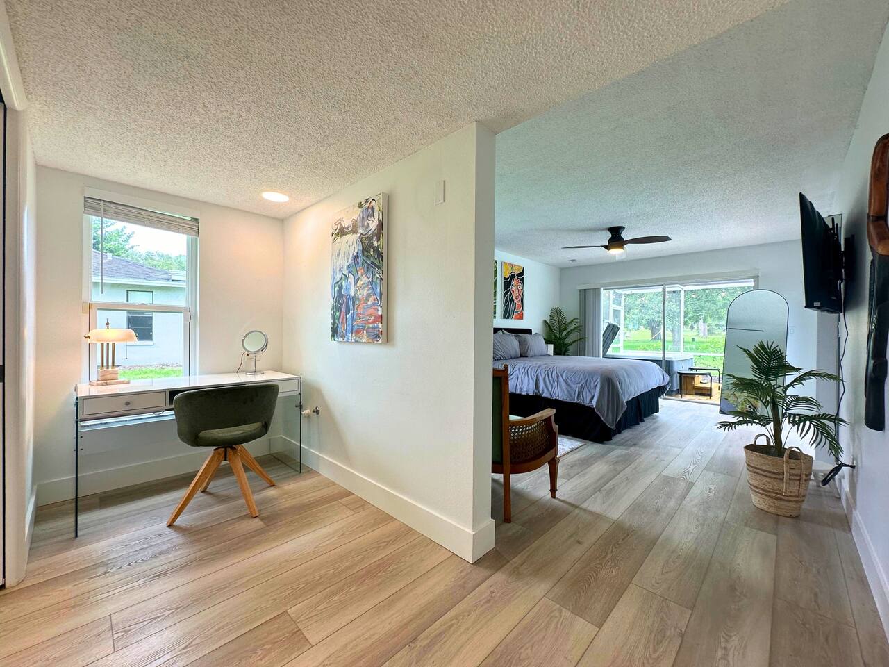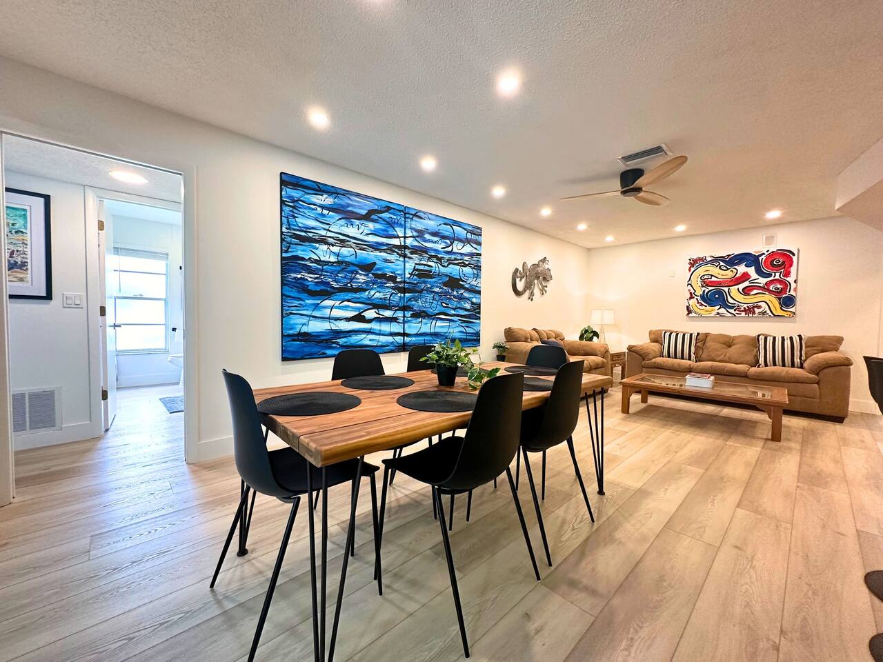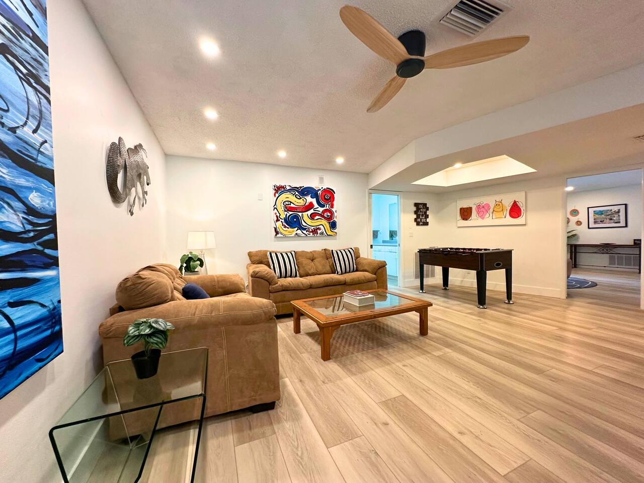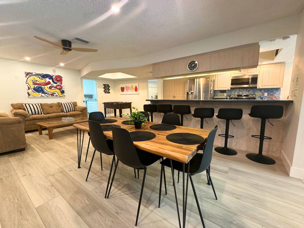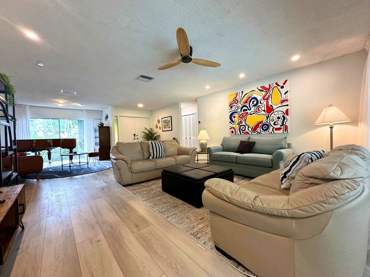 Welcome to our spacious open concept living, kitchen, and dining area. Here, you'll discover everything you need for relaxation and entertainment. Whether you prefer sinking into our plush sofa, gathering around the dining table for a meal, enjoying a lively game of foosball with family and friends, or simply relaxing on the hot tub while enjoying the panoramic view of the pool and golf course, our space is designed to cater to your comfort and enjoyment. Our second living room is a haven of comfort and leisure. It showcases a beautiful grand piano, inviting you to create music and unwind in a serene atmosphere. The room offers a picturesque view of the pool, adding tranquility to your experience. Ample seating options abound with multiple cozy sofas, ensuring everyone can relax and socialize comfortably. Furthermore, the living room offers additional sleeping arrangements: one sofa bed that accommodates 2 guests and another futon that can accommodate 1 guest. Step into our well-appointed kitchen, where cooking becomes a delight! Our space is fully equipped with all the essentials: refrigerator, oven/stove, dishwasher, microwave, blender, coffee maker, toaster, and much more, ensuring you have everything you need for effortless meal preparation. The inviting ambiance is ideal for family gatherings, boasting two dining tables—one indoors accommodating 6 guests and one outdoors accommodating 6 guests —that comfortably seat twelve guests in total. Additionally, we have a breakfast island bar equipped with 6 bar stools, perfect for quick morning meals. Our master bedroom features a luxurious king-size bed with a nightstand, bedside lamp, a TV, and a ceiling fan. A full-length mirror and spacious walk-in closet offer convenience, while a dedicated desk provides a comfortable workspace or simply to enjoy pampering yourself with the natural lighting from Florida's sunshine. The ensuite bathroom provides privacy and luxury. Enjoy direct access to the outdoor hot tub and pool, seamlessly blending indoor comfort with outdoor relaxation. Whether you're resting indoors or enjoying the amenities outside, our master suite is designed for your comfort and enjoyment. Moving to our second bedroom, you'll find a comfortable queen-size bed accompanied by a TV for entertainment, a bedside lamp, nightstand, dresser, shelves, full-length mirror, and a generous closet, ensuring a serene and restful environment. Additionally, this bedroom has a direct access to one of the bathrooms. Bedroom three offers a serene atmosphere with its king-size bed and thoughtful addition of a baby crib, along with a bedside lamp and ample closet space. Bedroom four continues the theme of comfort and convenience with its king-size bed, nightstand with bedside lamp, full-length mirror, closet, providing a peaceful retreat for guests, a rocking chair and a patio door with a direct access to the pool. Each bedroom is equipped with a ceiling fan to ensure comfort and ventilation throughout your stay, completing the welcoming and relaxing atmosphere of our accommodation. Our home features 3 bathrooms designed with your comfort in mind. The Guest Bathroom #1 offers a thoughtfully designed tub-shower combination, a toilet bowl, a hair dryer, and a stylish vanity sinks with two mirrors. Guest Bathroom #2 is equipped with a convenient stand-up shower, a vanity with mirror, a hair dryer, and a toilet bowl and this bathroom has direct access to Bedroom #2. In the Master bathroom, you'll discover vanity sinks with mirrors, a toilet bowl, a bathtub, a hair dryer, and additionally a convenient stand-up shower. We've meticulously designed our Lanai to maximize your outdoor enjoyment. It features a convenient outdoor bar station perfect for mixing drinks and hosting gatherings with ease. Ample seating is provided for lounging and dining al fresco, creating a comfortable and inviting atmosphere. For added luxury, indulge in our pool or hot tub and enjoy the serene golf course landscape beyond or fire up the grill for a barbecue. Our property boasts a washer and dryer conveniently situated in the laundry room by the garage, provided at no extra cost. Moreover, there are two parking spaces available in the driveway. This is a non-smoking property, and this home has Wi-Fi. We provide a starter supply of liquid soap, dish soap, dishwasher soap, paper towel, toilet paper, and garbage bags. About the Area: Located in the heart of Clearwater, our property offers more than just convenient access to Florida's renowned beaches; it provides an ideal retreat for both relaxation and exploration. Just minutes away from our doorstep, Clearwater Beach beckons with its accolade as one of the top beaches in the U.S. The beach's soft, powdery sands and turquoise waters create a picturesque setting perfect for sunbathing, swimming, or enjoying water sports like parasailing and jet skiing. The vibrant beachfront area, including Pier 60, is alive with street performers, artisans, and stunning sunset views, making it a must-visit during your stay. Surrounding our tranquil location are lush green spaces and natural attractions that cater to outdoor enthusiasts. Folly Farms Nature Preserve, a short drive away, invites visitors to explore its pristine woodlands and marshes, offering scenic hiking trails, birdwatching opportunities, and peaceful picnic spots. It's an ideal escape into nature for those seeking tranquility and natural beauty. For those looking to stay active, the nearby Ream Wilson Clearwater Trail offers miles of scenic biking and jogging paths that wind through picturesque landscapes and alongside tranquil waterways. Families will find no shortage of activities to entertain all ages in Clearwater. The Clearwater Marine Aquarium, home to the famous Winter the dolphin from the movie "Dolphin Tale," offers educational exhibits and live animal encounters that inspire and delight visitors. Philippe Park, nestled on the shores of Old Tampa Bay, combines histo