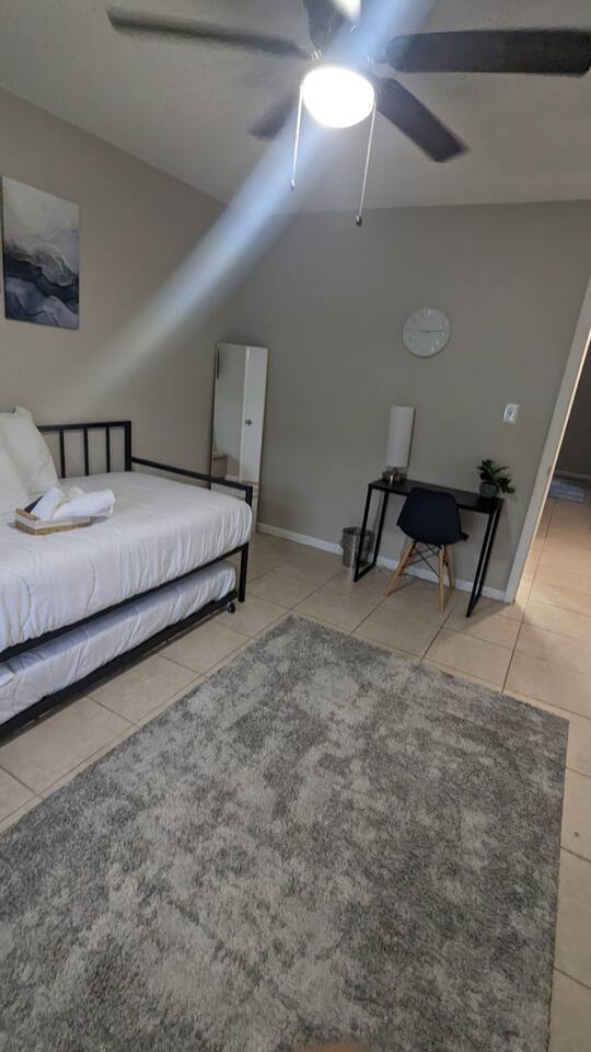 Your serene oasis at Lakeland! Nestled in a tranquil neighborhood, this cozy unit offers a peaceful retreat for travelers seeking relaxation and rejuvenation. Step inside and experience the comfort of home in our thoughtfully designed unit. The inviting living space features comfortable furnishings, perfect for lounging after a day of exploring the local area. Catch up on your favorite shows with streaming services available on the flat-screen TV or simply unwind with a good book. The fully equipped kitchen boasts modern appliances and ample counter space, making meal preparation a breeze. Enjoy your morning coffee or savor a delicious meal at the dining table, where you can plan your day's adventures. Retreat to the bedroom, furnished with a plush full bed and soft linens for a restful night's sleep. Wake up feeling refreshed and ready to explore all that Lakeland has to offer. Outside, you'll find a private patio where you can soak up the Florida sunshine or enjoy a quiet moment surrounded by lush greenery. Conveniently located near Lake Hunter, outdoor enthusiasts will delight in the opportunities for fishing, boating, and nature walks. Explore the vibrant downtown area, home to charming shops, delicious restaurants, and cultural attractions. Whether you're seeking a romantic getaway or a peaceful escape, our home provides the perfect setting for your next vacation. Book your stay today and experience the tranquility of Lakeland! About the Area Lakeland, Florida, offers not only a comfortable retreat but also easy access to a variety of activities and attractions for an unforgettable vacation experience. Outdoor enthusiasts will appreciate being just moments away from the picturesque Lake Hunter, where you can enjoy fishing, boating, or leisurely strolls along the scenic shoreline. Explore the nearby parks and nature reserves, such as Hollis Garden or Circle B Bar Reserve, where you can encounter native wildlife and immerse yourself in the natural beauty of Florida. For those interested in arts and culture, downtown Lakeland is a treasure trove of galleries, museums, and theaters. Explore the Polk Museum of Art to admire captivating exhibitions, or catch a live performance at the historic Polk Theatre. Foodies will delight in the diverse culinary scene that Lakeland has to offer. From local eateries serving up Southern comfort food to trendy cafes and international cuisine, there's something to satisfy every palate. Don't miss the opportunity to sample fresh seafood at one of the waterfront restaurants or indulge in homemade ice cream at a charming dessert shop. If you're in the mood for shopping, Lakeland won't disappoint. Browse the boutiques and specialty shops in the downtown area for unique finds and souvenirs. You can also explore the nearby Lakeland Square Mall for a wide selection of stores and brands. For a day trip adventure, consider visiting nearby attractions such as LEGOLAND® Florida Resort, just a short drive away. With thrilling rides, interactive exhibits, and LEGO®-themed attractions, it's a fun-filled destination for visitors of all ages. No matter what your interests may be, our home provides the perfect home base for exploring Lakeland and its surrounding areas. Book your stay today and embark on an unforgettable adventure in the Sunshine State.