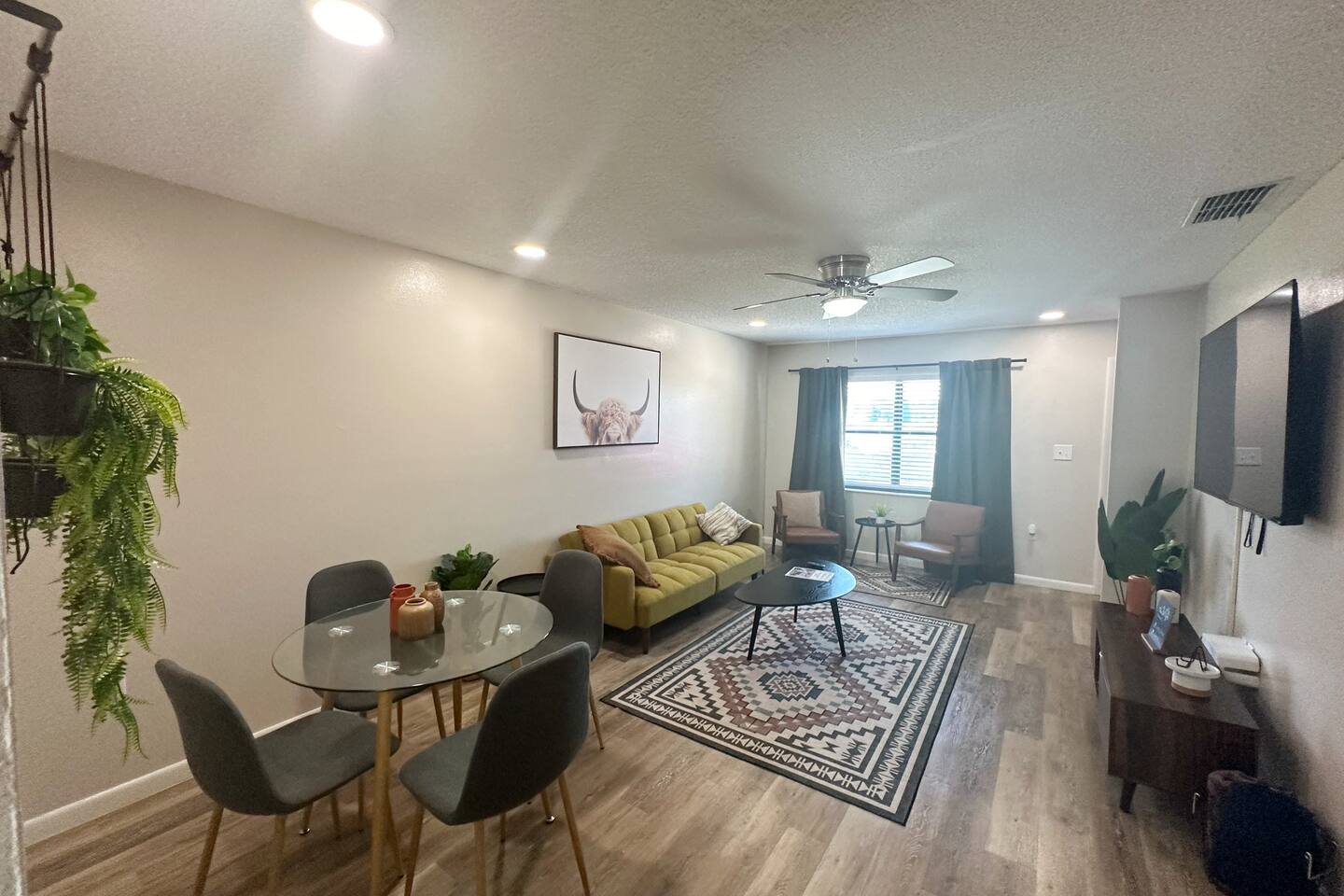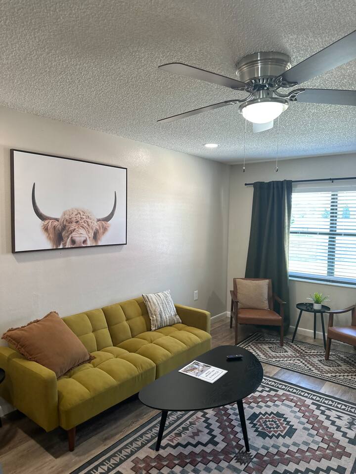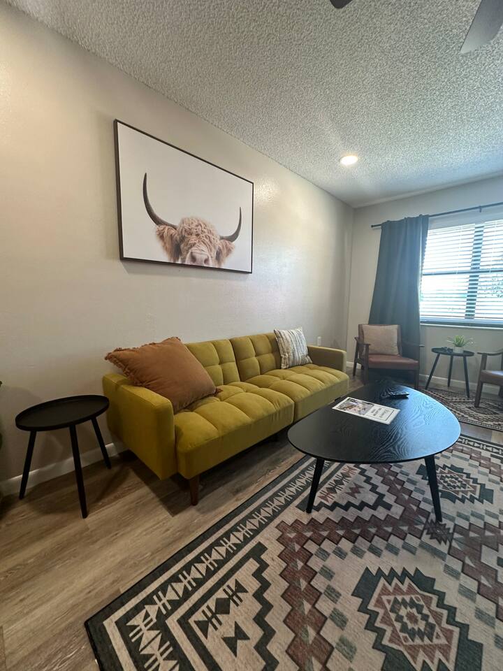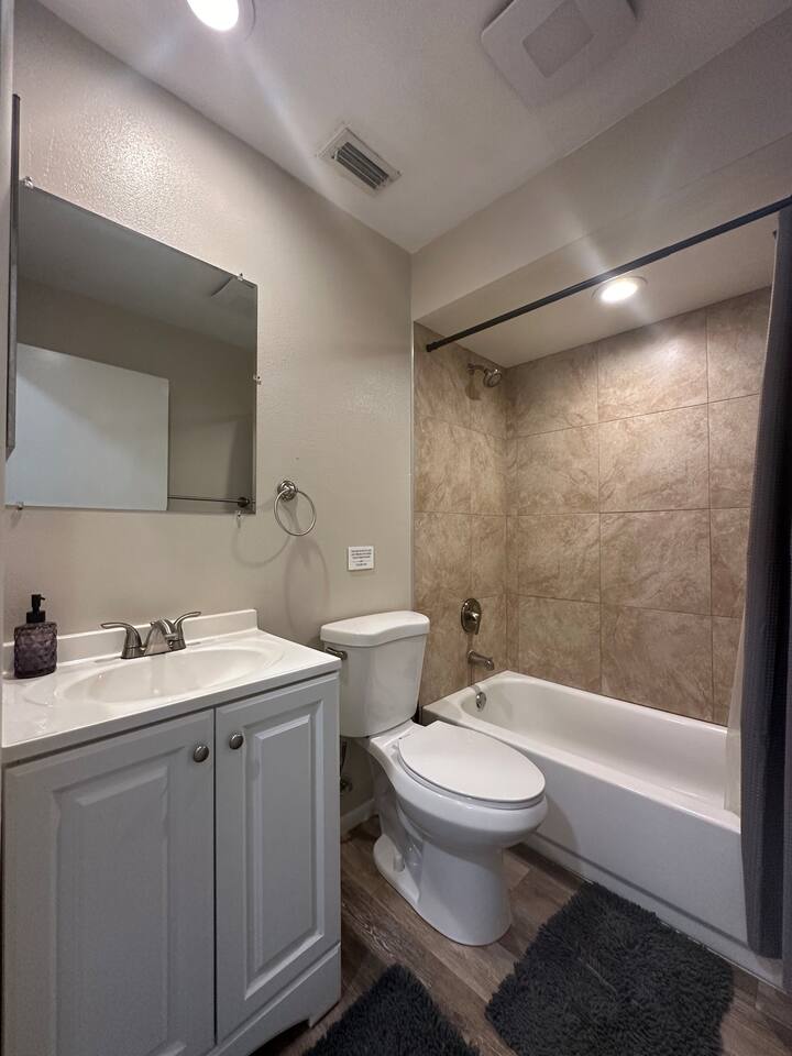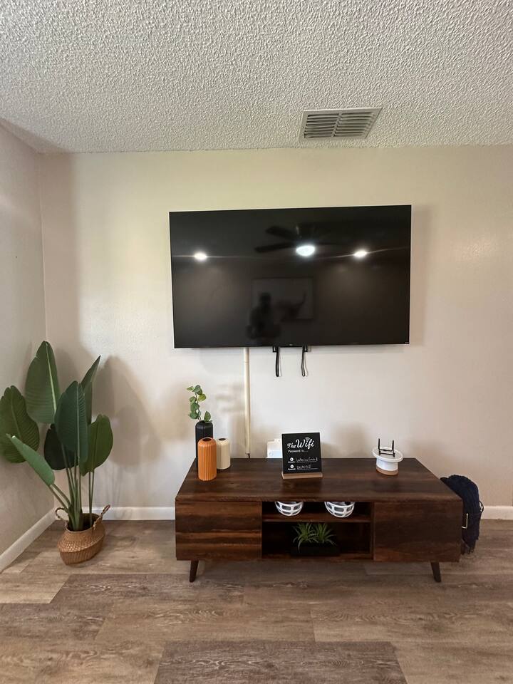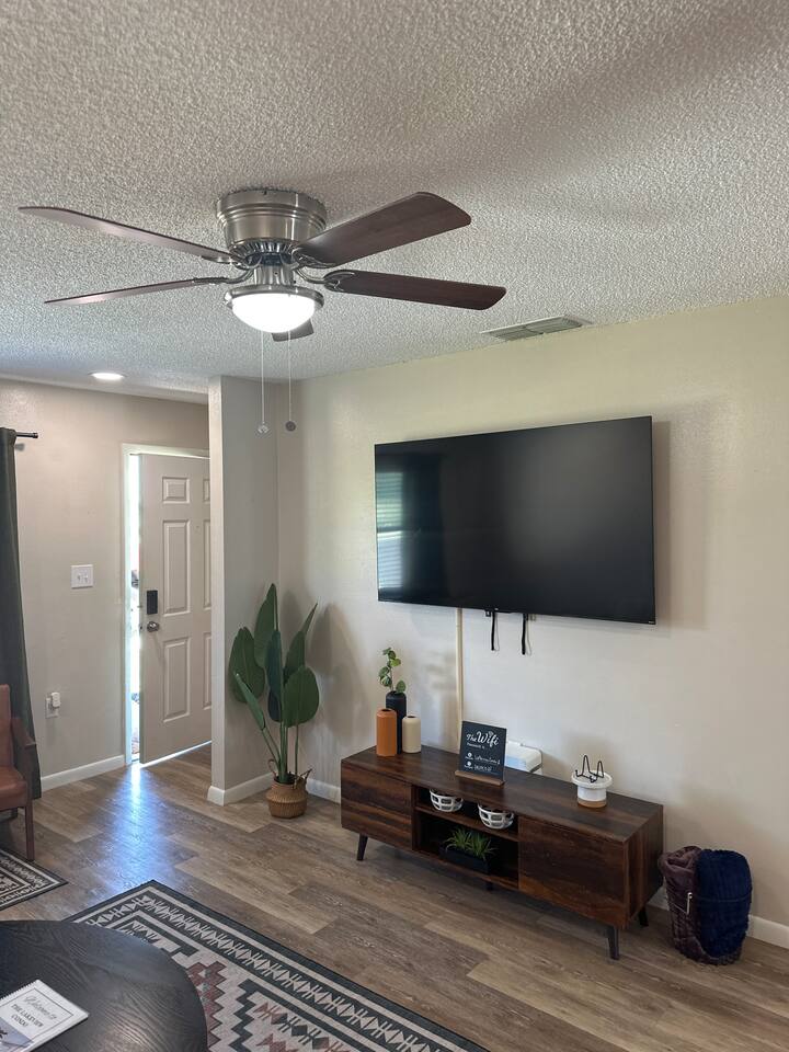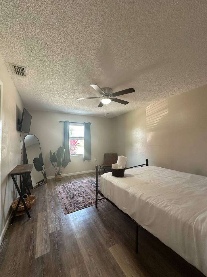 About the space: Enter our well-crafted unit and immerse yourself in the cozy ambiance of home. The living area beckons with comfortable furnishings, you'll find a chic sofa easily converts into a cozy bed, perfect for accommodating one guest, a TV, a coffee table, an end table, a ceiling fan ideal for unwinding after a day of local exploration. The fully equipped kitchen boasts modern appliances such as refrigerator, oven/stove, dishwasher, coffee maker, a double-sink microwave, and ample counter space, making meal preparation a breeze. Enjoy your morning coffee or savor a delicious meal at the dining table which seats 4 guests, where you can plan your day's adventures. Step into the Master bedroom, where you’ll see a queen-size bed, a ceiling fan, a TV, a full-length mirror, and soft linens that promise a rejuvenating night’s rest. As you wake up, you’ll feel invigorated and eager to explore everything Lakeland has in store for you. The guest bedroom features two twin-size day beds, accompanied by another ceiling fan, a TV, and a desk and chair—perfect for moments of productivity. Our bathroom features vanity sink with mirror, toilet bowl, tub-shower combo and hair dryer. The washer and dryer are located near the kitchen. This home has Wi-Fi. We provide a starter supply of liquid soap, dish soap, dishwasher soap, paper towel, toilet paper, and garbage bags. About the Area Lakeland, Florida, offers not only a comfortable retreat but also easy access to a variety of activities and attractions for an unforgettable vacation experience. Outdoor enthusiasts will appreciate being just moments away from the picturesque Lake Hunter, where you can enjoy fishing, boating, or leisurely strolls along the scenic shoreline. Explore the nearby parks and nature reserves, such as Hollis Garden or Circle B Bar Reserve, where you can encounter native wildlife and immerse yourself in the natural beauty of Florida. For those interested in arts and culture, downtown Lakeland is a treasure trove of galleries, museums, and theaters. Explore the Polk Museum of Art to admire captivating exhibitions, or catch a live performance at the historic Polk Theatre. Foodies will delight in the diverse culinary scene that Lakeland has to offer. From local eateries serving up Southern comfort food to trendy cafes and international cuisine, there's something to satisfy every palate. Don't miss the opportunity to sample fresh seafood at one of the waterfront restaurants or indulge in homemade ice cream at a charming dessert shop. If you're in the mood for shopping, Lakeland won't disappoint. Browse the boutiques and specialty shops in the downtown area for unique finds and souvenirs. You can also explore the nearby Lakeland Square Mall for a wide selection of stores and brands. For a day trip adventure, consider visiting nearby attractions such as LEGOLAND® Florida Resort, just a short drive away. With thrilling rides, interactive exhibits, and LEGO®-themed attractions, it's a fun-filled destination for visitors of all ages. Conveniently located near lakes, outdoor enthusiasts will delight in the opportunities for fishing, boating, and nature walks. Explore the vibrant downtown area, home to charming shops, delicious restaurants, and cultural attractions. Whether you're seeking a romantic getaway or a peaceful escape, our home provides the perfect setting for your next vacation. Book your stay today and experience the tranquility of Lakeland! No matter what your interests may be, our home provides the perfect home base for exploring Lakeland and its surrounding areas. Book your stay today and embark on an unforgettable adventure in the Sunshine State.