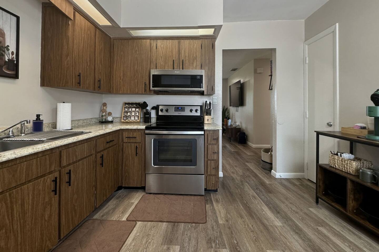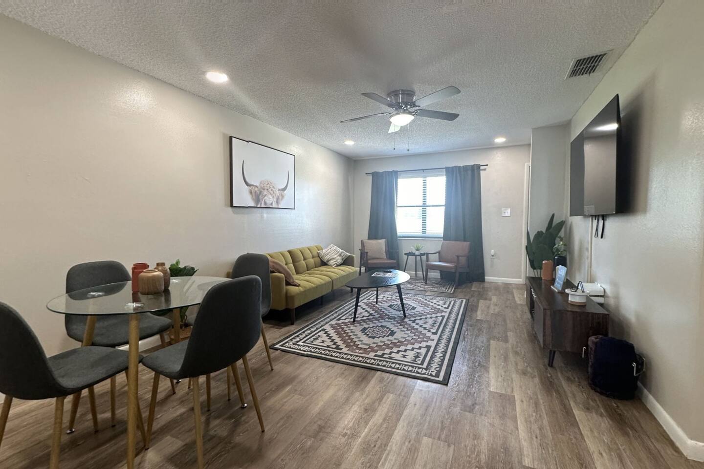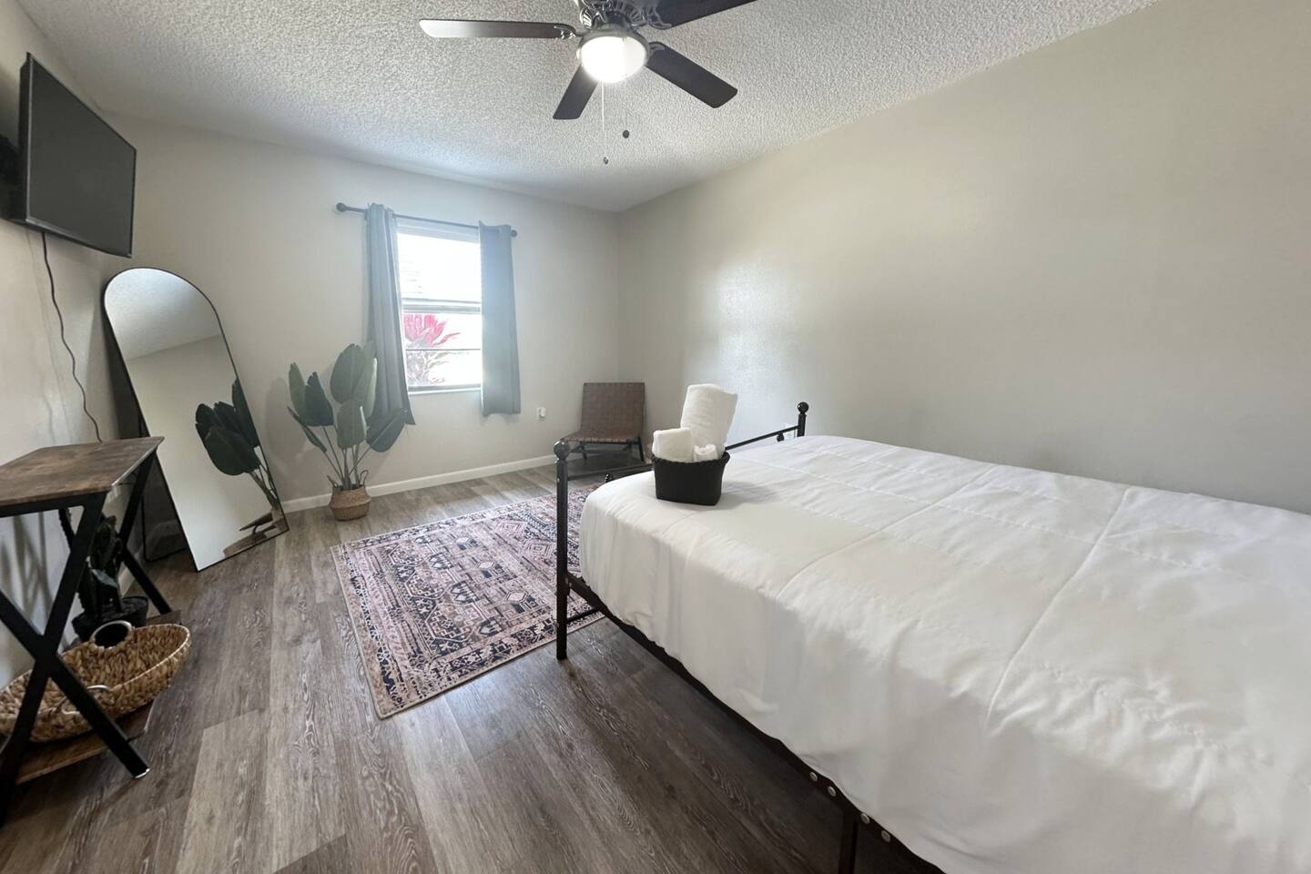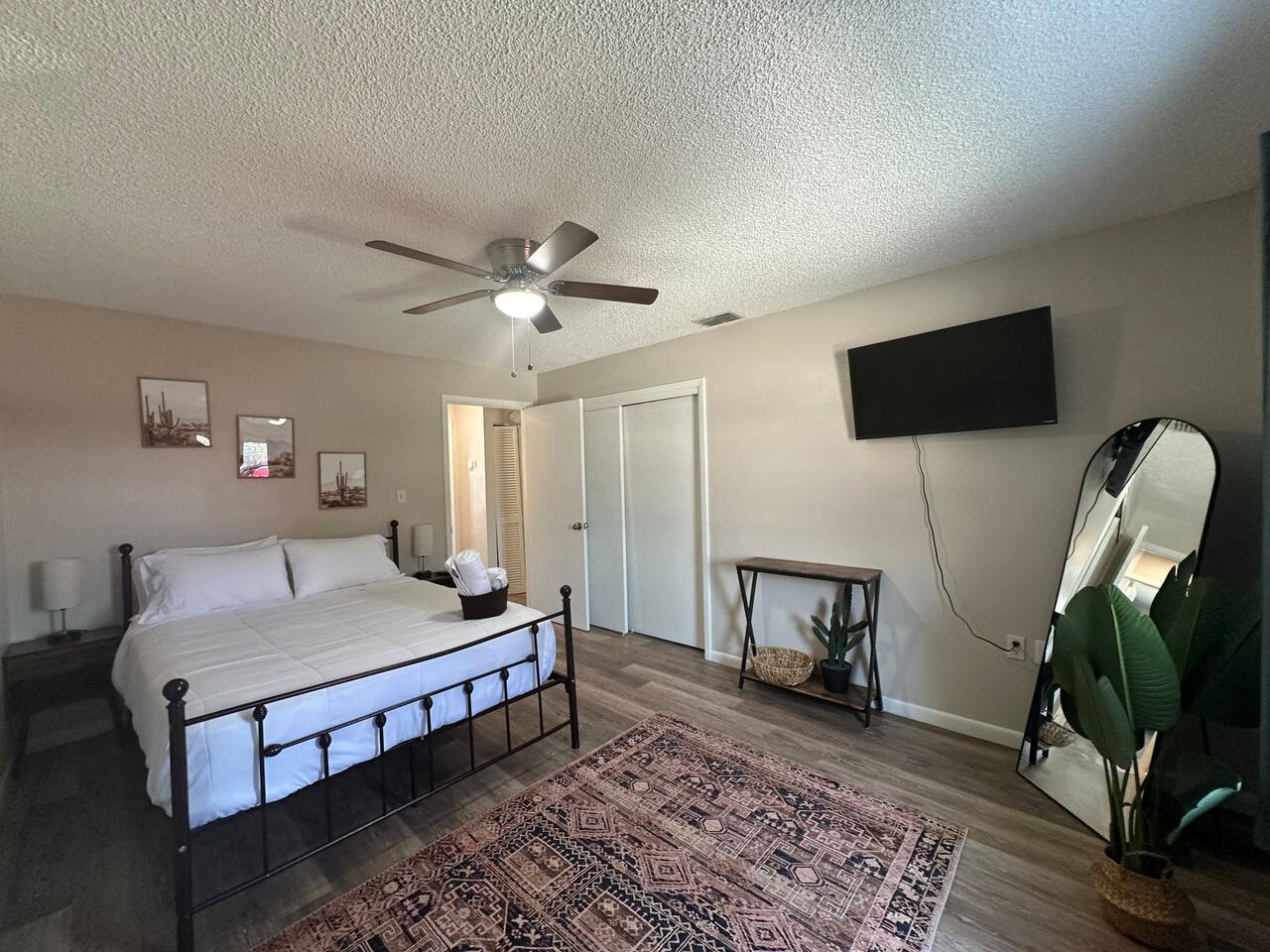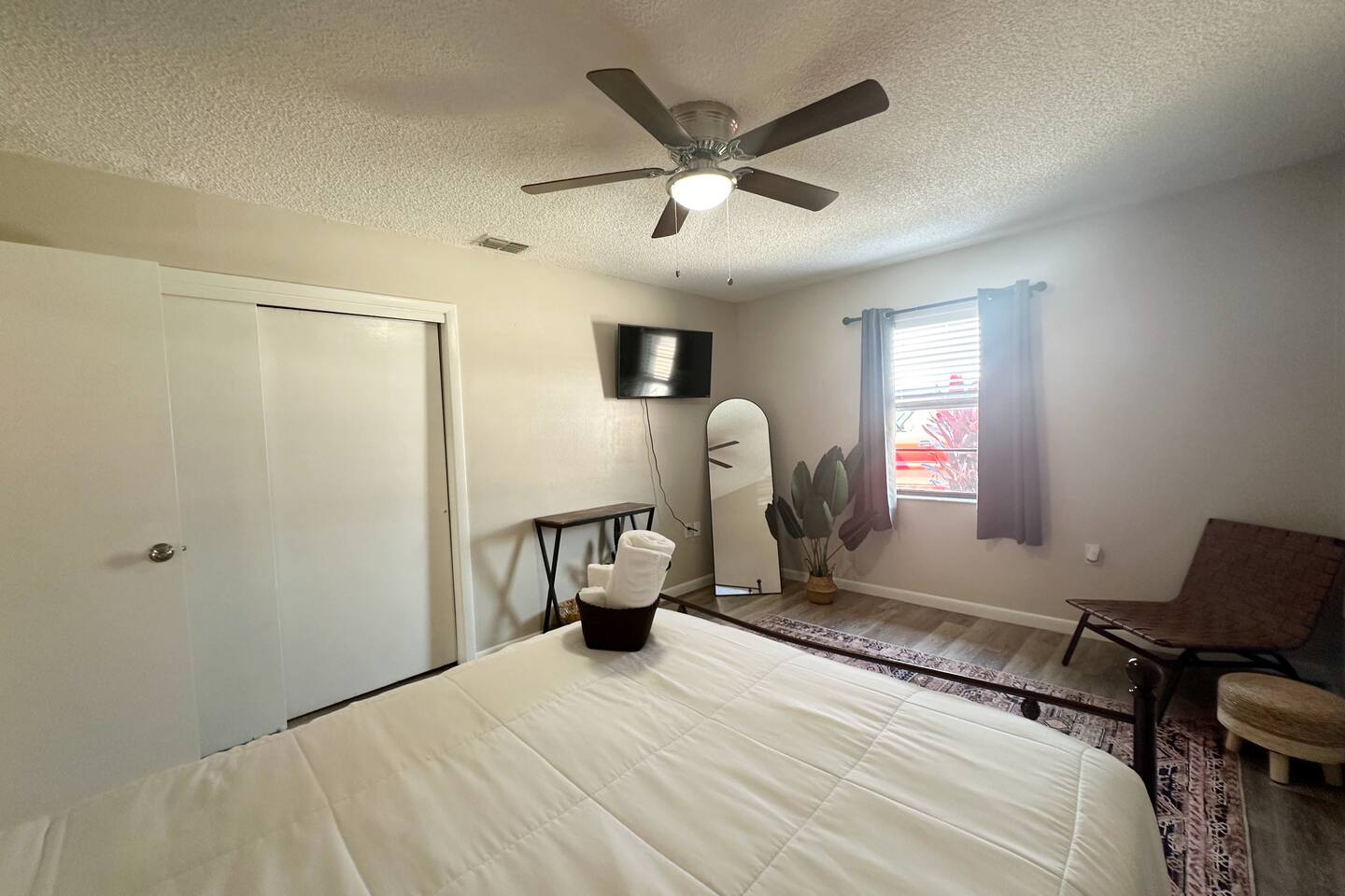 About the space: Enter our well-crafted unit and immerse yourself in the cozy ambiance of home. The living area beckons with comfortable furnishings, you'll find a chic sofa easily converts into a cozy bed, perfect for accommodating one guest, a TV, a coffee table, an end table, a ceiling fan ideal for unwinding after a day of local exploration. The fully equipped kitchen boasts modern appliances such as refrigerator, oven/stove, dishwasher, coffee maker, a double-sink microwave, and ample counter space, making meal preparation a breeze. Enjoy your morning coffee or savor a delicious meal at the dining table which seats 4 guests, where you can plan your day's adventures. Step into the Master bedroom, where you’ll see a queen-size bed, a ceiling fan, a TV, a full-length mirror, and soft linens that promise a rejuvenating night’s rest. As you wake up, you’ll feel invigorated and eager to explore everything Lakeland has in store for you. The guest bedroom features two twin-size day beds, accompanied by another ceiling fan, a TV, and a desk and chair—perfect for moments of productivity. Our bathroom features vanity sink with mirror, toilet bowl, tub-shower combo and hair dryer. The washer and dryer are located near the kitchen. This home has Wi-Fi. We provide a starter supply of liquid soap, dish soap, dishwasher soap, paper towel, toilet paper, and garbage bags. About the Area Lakeland, Florida, offers not only a comfortable retreat but also easy access to a variety of activities and attractions for an unforgettable vacation experience. Outdoor enthusiasts will appreciate being just moments away from the picturesque Lake Hunter, where you can enjoy fishing, boating, or leisurely strolls along the scenic shoreline. Explore the nearby parks and nature reserves, such as Hollis Garden or Circle B Bar Reserve, where you can encounter native wildlife and immerse yourself in the natural beauty of Florida. For those interested in arts and culture, downtown Lakeland is a treasure trove of galleries, museums, and theaters. Explore the Polk Museum of Art to admire captivating exhibitions, or catch a live performance at the historic Polk Theatre. Foodies will delight in the diverse culinary scene that Lakeland has to offer. From local eateries serving up Southern comfort food to trendy cafes and international cuisine, there's something to satisfy every palate. Don't miss the opportunity to sample fresh seafood at one of the waterfront restaurants or indulge in homemade ice cream at a charming dessert shop. If you're in the mood for shopping, Lakeland won't disappoint. Browse the boutiques and specialty shops in the downtown area for unique finds and souvenirs. You can also explore the nearby Lakeland Square Mall for a wide selection of stores and brands. For a day trip adventure, consider visiting nearby attractions such as LEGOLAND® Florida Resort, just a short drive away. With thrilling rides, interactive exhibits, and LEGO®-themed attractions, it's a fun-filled destination for visitors of all ages. Conveniently located near lakes, outdoor enthusiasts will delight in the opportunities for fishing, boating, and nature walks. Explore the vibrant downtown area, home to charming shops, delicious restaurants, and cultural attractions. Whether you're seeking a romantic getaway or a peaceful escape, our home provides the perfect setting for your next vacation. Book your stay today and experience the tranquility of Lakeland! No matter what your interests may be, our home provides the perfect home base for exploring Lakeland and its surrounding areas. Book your stay today and embark on an unforgettable adventure in the Sunshine State.