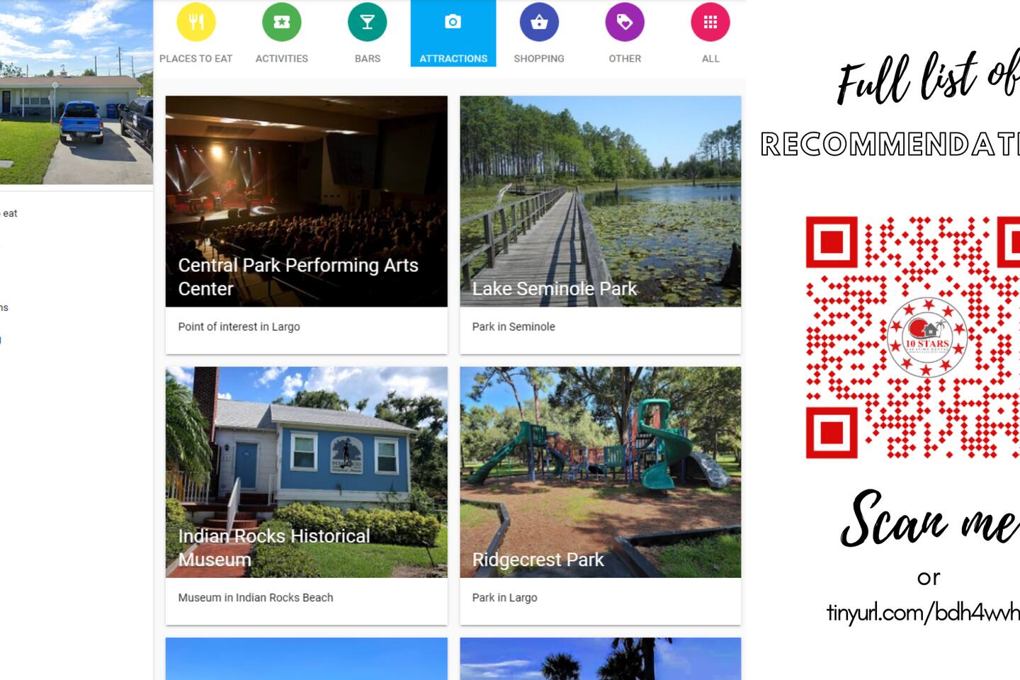 Step inside and you'll be greeted by an inviting living room with comfortable seating and a flat-screen TV. The adjacent dining area has seating for 8, a kitchen island with 3 bar stools and the fully equipped kitchen has everything you need to whip up a delicious meal during your stay. We have a spacious workspace desk and a chair located in the kitchen area if you ever need to work remotely. Each of the four bedrooms is beautifully decorated and offers comfortable sleeping arrangements for a good night's rest. The master bedroom is nicely decorated and furnished with a queen size bed, a twin-size bed, a walk-in closet, ceiling fan, split type ductless system and a flat TV. The second bedroom features queen size bed, closet, a workspace desk and chair, ceiling fan and a flat TV. The third bedroom offers a queen size bed, twin-size bed, a closet, ceiling fan, a TV. The fourth bedroom features queen size bed, a closet, and a TV, making this house a perfect spot for extended families. A washer and dryer, wireless internet, two car parking space in the driveway and a beautiful pool with lanai are also included. This is a non-smoking house. Linens, towels, and pillows are provided for the comfort of our guests. We provide a starter supply of liquid soap, dish soap, dishwasher soap, paper towel, toilet paper, and garbage bags. Outside, you'll love spending time in our backyard oasis. Relax on the patio furniture and soak up the Florida sunshine or take a refreshing dip in the pool. The outdoor bar table with 8 stools and a mini sink is perfect for entertaining. Please note that the BBQ grill is located just outside the lanai for guest use, making it ideal for cookouts with family and friends. The Area: Largo, Florida is a great destination for tourists looking for a little bit of everything. Located in the Tampa Bay area, Largo offers a wide range of activities, attractions, and scenery. From beautiful beaches and parks to exciting shopping, dining, and nightlife, the city has something for everyone. There are also plenty of attractions for nature enthusiasts, such as the Largo Nature Park, which is home to a variety of wildlife. Additionally, visitors can explore the historic downtown area, which is home to many unique shops and restaurants. With so much to do and see, Largo is an ideal destination for a memorable vacation. Largo has several beaches to explore, such as Indian Rocks Beach, Largo Beach, Belleair Beach, Belleair shore Beach and Clearwater Beach. There are also several state parks and nature preserve in the area, like Lake Seminole Park and the Tampa Bay Estuary. For those looking for activities, Largo offers plenty of fun for the whole family. Visitors can take part in activities such as golfing, fishing, kayaking, horseback riding, and more. There are also several museums, galleries, and other cultural attractions in the area. When it comes to restaurants, it has plenty of options. From casual to upscale, there are restaurants with a variety of cuisines, including Italian, Mexican, Asian, and American. Popular restaurants in Largo include Bonefish Grill, Fortunatos Italian Restaurant, and Pia’s. There are also plenty of bars and pubs to explore.