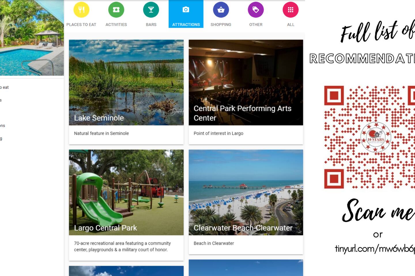 Step into our residence, and you'll find a bright and spacious living area designed with the intent of fostering both relaxation and social connection. The living room exudes a tasteful ambiance, marrying style and comfort to create a snug retreat for unwinding post-adventures. Ease into the plush comfort of our electric reclining sofa, where you can leisurely catch up on your favorite shows displayed on the flat-screen TV—an enticing invitation to unwind in a haven of both luxury and entertainment. The master bedroom is nicely decorated and furnished with a queen-sized bed, a closet, a ceiling fan, a flat TV, and an ensuite bathroom. The second guest room offers (2) queen-size beds, a closet, a ceiling fan, and a flat TV. The third bedroom has (2) single-size beds, a closet, a ceiling fan, and a flat TV, and the bonus room, near the living room, has a cozy daybed with flat TV, making this house a perfect spot for extended families. A washer and dryer, wireless internet, two car parking spaces in the driveway, and a beautiful heated pool are also included. This is a non-smoking house. Linens, towels, and pillows are provided for the comfort of our guests. As the sun sets on your days of exploration, return to the comfort of our Largo home. The thoughtfully designed living spaces offer a seamless blend of functionality and style, ensuring that relaxation is not compromised. The three bedrooms provide tranquil retreats, each adorned with a unique charm to cater to individual preferences. Whether you choose to unwind in the inviting ambiance of the living room or savor a home-cooked meal in our fully-equipped kitchen, our abode becomes a sanctuary, inviting you to create cherished moments with your loved ones. The possibilities for relaxation and enjoyment are as boundless as the Florida horizon. In our Largo home, you don't just find accommodation; you discover a portal to the essence of the Florida Gulf Coast experience. Let the sun, sea, and serenity of Largo weave a tapestry of memories that will linger long after your vacation comes to an end. Welcome to a world where charm meets comfort, and every moment is an opportunity for joy. We provide a starter supply of liquid soap, dish soap, dishwasher soap, paper towel, toilet paper, and garbage bags. About the Area: Largo, Florida is a great destination for tourists looking for a little bit of everything. Located in the Tampa Bay area, Largo offers a wide range of activities, attractions, and scenery. From beautiful beaches and parks to exciting shopping, dining, and nightlife, the city has something for everyone. There are also plenty of attractions for nature enthusiasts, such as the Largo Nature Park, which is home to a variety of wildlife. Additionally, visitors can explore the historic downtown area, which is home to many unique shops and restaurants. With so much to do and see, Largo is an ideal destination for a memorable vacation. Largo has several beaches to explore, such as Indian Rocks Beach, Largo Beach, Belleair Beach, Belleair shore Beach and Clearwater Beach. The pristine beaches that dot the coastline are a signature feature of the region, inviting visitors to bask in the sun's warm embrace, stroll along the sandy shores, or engage in a myriad of water-based activities. The symphony of waves crashing against the shore creates a soothing backdrop for moments of tranquility and relaxation. There are also several state parks and nature preserve in the area, like Lake Seminole Park and the Tampa Bay Estuary. For those with an affinity for the outdoors, Largo presents an array of parks and recreational spaces. From nature trails that wind through lush landscapes to recreational areas perfect for a family picnic, the city is a haven for nature enthusiasts. Unleash your adventurous spirit by exploring the natural beauty that surrounds our charming abode. For those looking for activities, Largo offers plenty of fun for the whole family. Visitors can take part in activities such as golfing, fishing, kayaking, horseback riding, and more. There are also several museums, galleries, and other cultural attractions in the area. When it comes to restaurants, it has plenty of options. From casual to upscale, there are restaurants with a variety of cuisines, including Italian, Mexican, Asian, and American. Popular restaurants in Largo include Bonefish Grill, Fortunatos Italian Restaurant, and Pia’s. There are also plenty of bars and pubs to explore. Largo is the perfect place to relax and have fun. Largo's allure extends beyond its natural wonders; the city is a treasure trove of culinary delights and shopping experiences. With an abundance of restaurants offering delectable cuisines, ranging from fresh seafood to international flavors, every palate is catered to. Stroll through the vibrant streets and discover local boutiques, art galleries, and charming shops, providing ample opportunities for indulgence and souvenir hunting.
