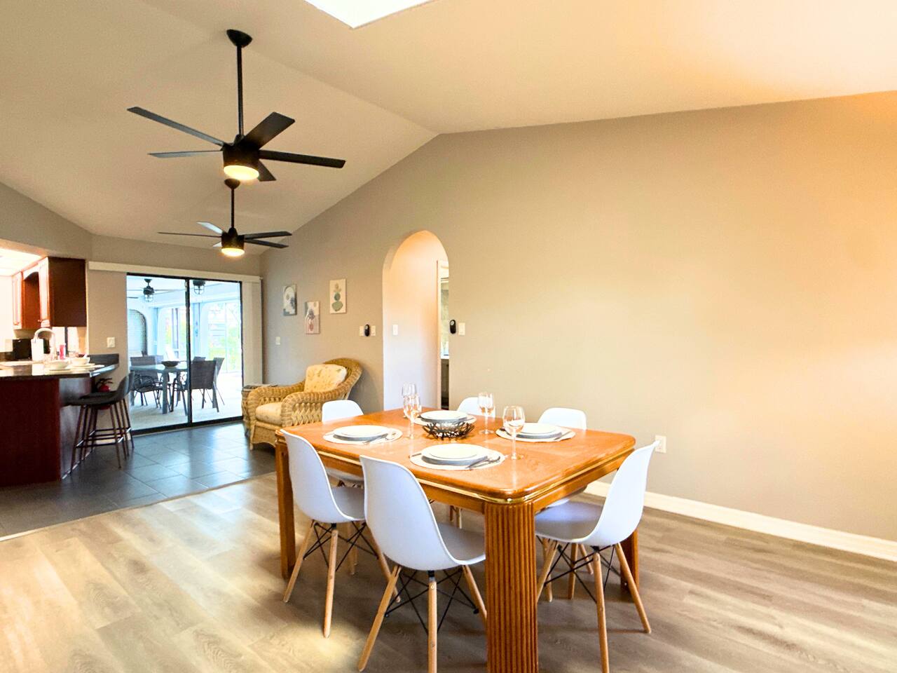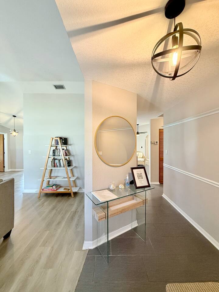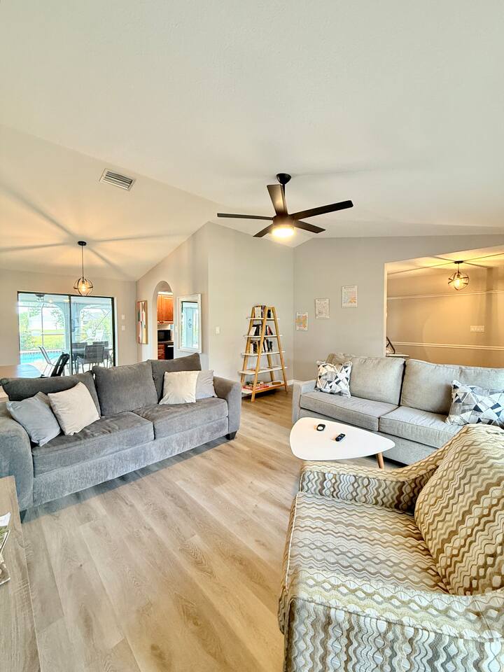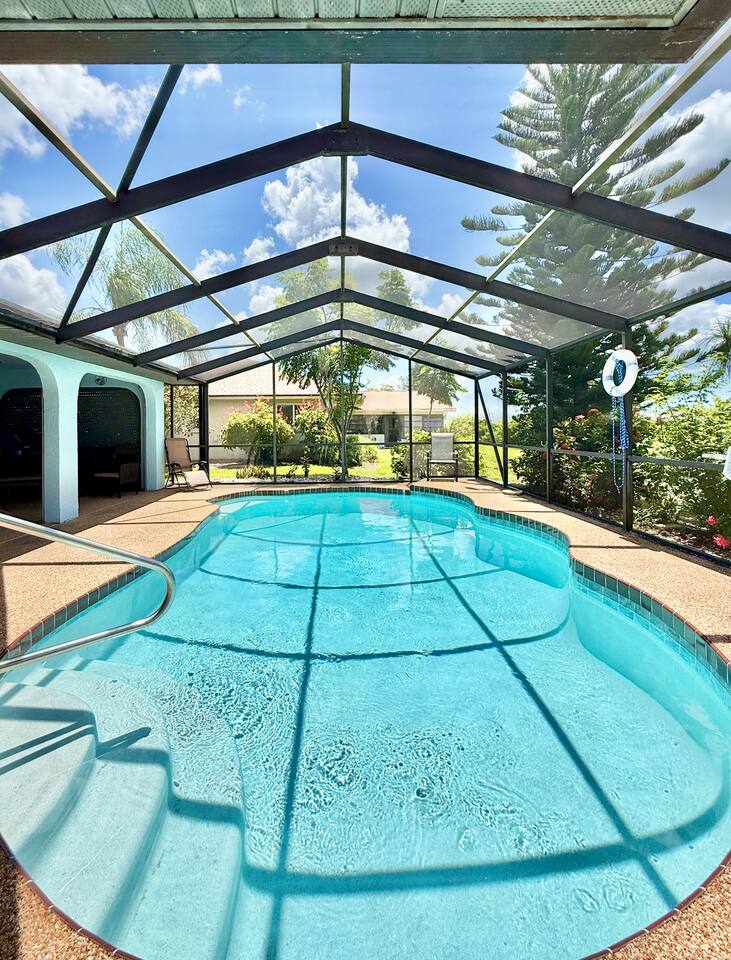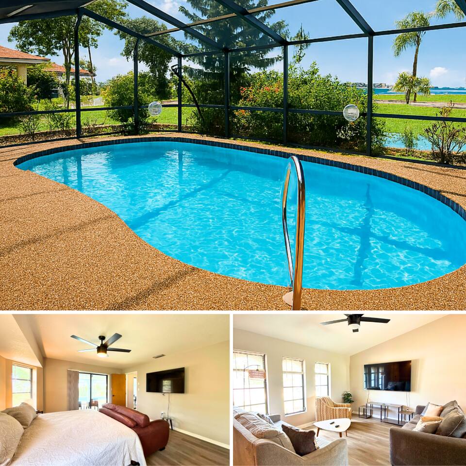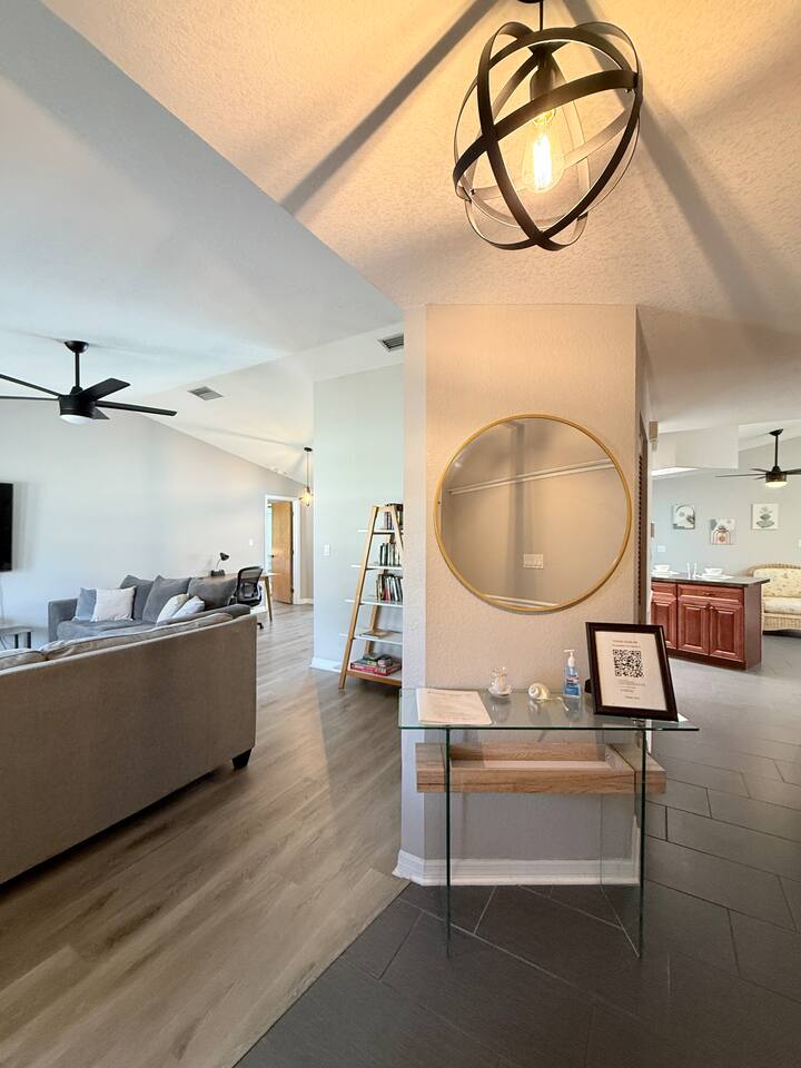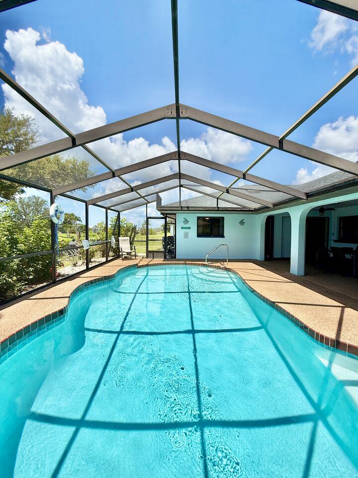 With a gorgeous architectural design and a large driveway, explore the bright and cheery family room. There is comfortable seating and a large flat-screen TV. Modern furnishings in neutral tones blend seamlessly with the backdrop of the pool and water views you see through the wall of sliders. Comfortable sofa bed (queen size) adds to the soothing atmosphere. You can snuggle together to watch a show or stretch out with a book in the living room. The formal dining room has a table for 6. The kitchen and dining flow into the great room, providing an open yet comfortable living area. The kitchen is the heart of this home and boasts appliances - dishwasher, microwave, refrigerator and an island with 2 bar stools… perfect to enjoy your Sunday brunch! Adjoining the kitchen is a dining table overlooking the lanai & pool area. The primary suite is a relaxing space, with a king bed, ceiling fan, flat-screen TV, a walk-in closet, and has a direct access to the patio/pool area. The en-suite bathroom is complete with two separate sink vanities, a custom walk-around shower, rain shower heads and a private enclosed toilet area. Two more bedrooms and a bathroom are on the opposite side of this home, giving guests a wing of their own. The second bedroom offers a queen-size bed, flat-screen TV, ceiling fan and a walk-in closet. The third bedroom has a double-size bed, a flat-screen TV, ceiling fan and a walk-in closet. Guest bathroom features a vanity, and a shower-over-the-tub combination and an access to the lanai/pool area. All bathrooms have hair dryers. The separate laundry room has a washer, dryer, and a utility sink. This home has Wi-Fi. On the lanai, you will find an outdoor eating area where you can enjoy a meal, a glass of wine, or a game of cards. On the pool deck, you have access to a lounging area, with lovely views of the water. There is also a standalone charcoal grill. Imagine yourself relaxing on the spacious covered deck, absorbing the breathtaking beauty that surrounds you. We provide a starter supply of liquid soap, dish soap, dishwasher soap, paper towel, toilet paper, and garbage bags. Pet is welcome! About the area: If it's an outdoor adventure you crave, you won't be disappointed! There are 2 community parks nearby - The Rotonda Community Park and Preserve. Offering tennis courts, a bike path, children's playground, and a large pavilion where you can enjoy a picnic after getting your morning exercise routine done. Broadmoor Park is also nearby, offering nice walking trails, seating benches, beautiful tropical landscaping, and water views! Ideally situated just minutes away from the local beaches at Boca Grande Island and Englewood (the best place for an incredible sunset), with first-class saltwater fishing and water sports facilities all in easy reach. Complete your vacation experience with a fishing tour, kayaking our waterways, or enjoying the gulf sunsets by the beach. The surrounding area boasts some of the best fishing and boating along with numerous beaches, golf courses, biking trails, many restaurants, shopping, and other recreational activities. The gorgeous white sandy beaches are full of activities; shelling, snorkeling, boating, beachcombing, and kayaking are some of the activities within minutes of your doorstep. The Cape Haze Peninsula is also home to the Tarpon and Snook capital of the world - Boca Grande - which is within a 20-minute drive. In addition, there are many public golf courses and numerous great local restaurants available for you to enjoy. The only thing missing is you! Located in a quiet area, in the heart of the Rotonda golfing community. Rotonda West is a sprawling settlement with lovely single-family homes and world-class golf courses. The community features 5 courses (99 holes) and 15 more nearby. The spacious beaches of Boca Grande, Manasota Key, and Palm Island are only minutes away, 7 miles to gulf beaches. The local beaches are very clean with typically only a few crowds. Nearby you will find numerous shops, restaurants, and bars. The Gulf of Mexico allows a variety of water sports from fishing to parasailing. Excursions to beautiful islands can be booked through various providers in the area. A great walking and biking route, The Pioneer Trail, meanders through Rotonda. The popular Rotonda Community Park offers shelter, grills, a playground, and tennis courts. This home away from home is fully stocked and well prepared to welcome the entire family! Perfect for building memories!