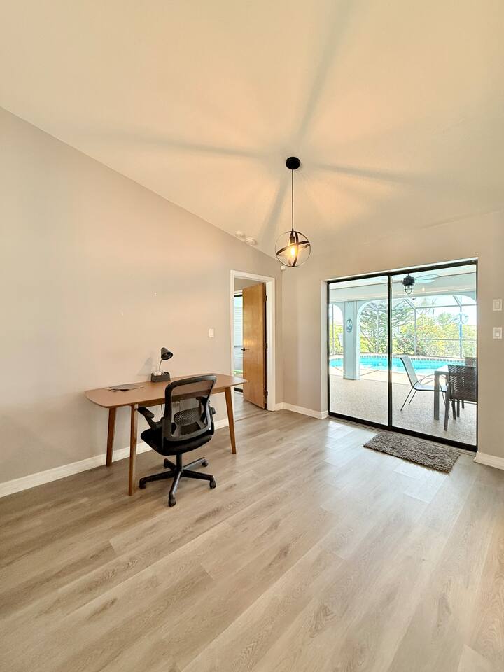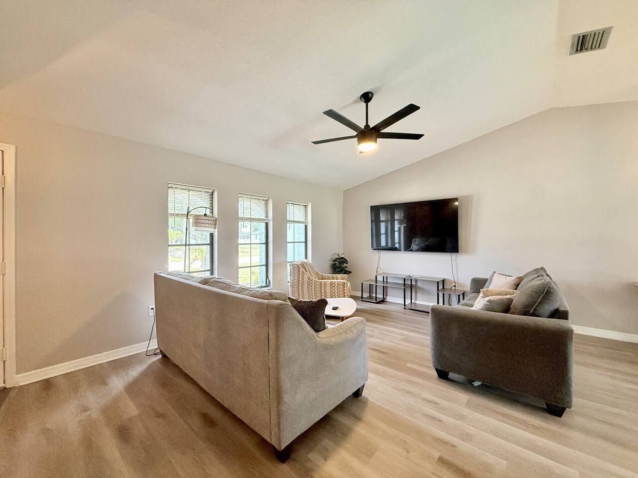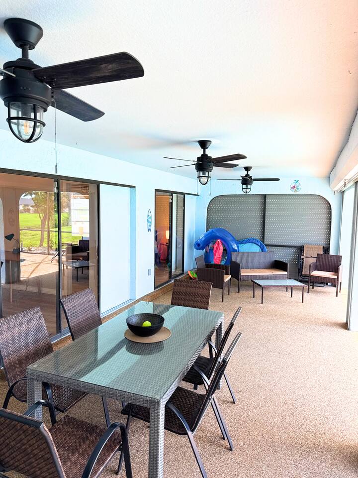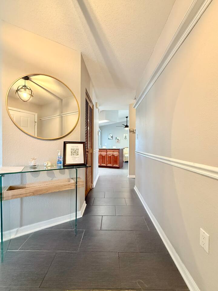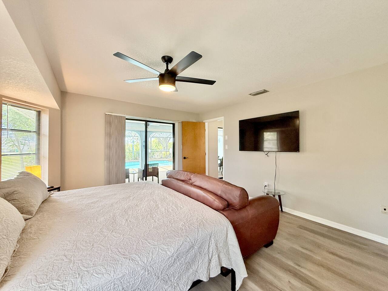 With a gorgeous architectural design and a large driveway, explore the bright and cheery family room. There is comfortable seating and a large flat-screen TV. Modern furnishings in neutral tones blend seamlessly with the backdrop of the pool and water views you see through the wall of sliders. Comfortable sofa bed (queen size) adds to the soothing atmosphere. You can snuggle together to watch a show or stretch out with a book in the living room. The formal dining room has a table for 6. The kitchen and dining flow into the great room, providing an open yet comfortable living area. The kitchen is the heart of this home and boasts appliances - dishwasher, microwave, refrigerator and an island with 2 bar stools… perfect to enjoy your Sunday brunch! Adjoining the kitchen is a dining table overlooking the lanai & pool area. The primary suite is a relaxing space, with a king bed, ceiling fan, flat-screen TV, a walk-in closet, and has a direct access to the patio/pool area. The en-suite bathroom is complete with two separate sink vanities, a custom walk-around shower, rain shower heads and a private enclosed toilet area. Two more bedrooms and a bathroom are on the opposite side of this home, giving guests a wing of their own. The second bedroom offers a queen-size bed, flat-screen TV, ceiling fan and a walk-in closet. The third bedroom has a double-size bed, a flat-screen TV, ceiling fan and a walk-in closet. Guest bathroom features a vanity, and a shower-over-the-tub combination and an access to the lanai/pool area. All bathrooms have hair dryers. The separate laundry room has a washer, dryer, and a utility sink. This home has Wi-Fi. On the lanai, you will find an outdoor eating area where you can enjoy a meal, a glass of wine, or a game of cards. On the pool deck, you have access to a lounging area, with lovely views of the water. There is also a standalone charcoal grill. Imagine yourself relaxing on the spacious covered deck, absorbing the breathtaking beauty that surrounds you. We provide a starter supply of liquid soap, dish soap, dishwasher soap, paper towel, toilet paper, and garbage bags. Pet is welcome! About the area: If it's an outdoor adventure you crave, you won't be disappointed! There are 2 community parks nearby - The Rotonda Community Park and Preserve. Offering tennis courts, a bike path, children's playground, and a large pavilion where you can enjoy a picnic after getting your morning exercise routine done. Broadmoor Park is also nearby, offering nice walking trails, seating benches, beautiful tropical landscaping, and water views! Ideally situated just minutes away from the local beaches at Boca Grande Island and Englewood (the best place for an incredible sunset), with first-class saltwater fishing and water sports facilities all in easy reach. Complete your vacation experience with a fishing tour, kayaking our waterways, or enjoying the gulf sunsets by the beach. The surrounding area boasts some of the best fishing and boating along with numerous beaches, golf courses, biking trails, many restaurants, shopping, and other recreational activities. The gorgeous white sandy beaches are full of activities; shelling, snorkeling, boating, beachcombing, and kayaking are some of the activities within minutes of your doorstep. The Cape Haze Peninsula is also home to the Tarpon and Snook capital of the world - Boca Grande - which is within a 20-minute drive. In addition, there are many public golf courses and numerous great local restaurants available for you to enjoy. The only thing missing is you! Located in a quiet area, in the heart of the Rotonda golfing community. Rotonda West is a sprawling settlement with lovely single-family homes and world-class golf courses. The community features 5 courses (99 holes) and 15 more nearby. The spacious beaches of Boca Grande, Manasota Key, and Palm Island are only minutes away, 7 miles to gulf beaches. The local beaches are very clean with typically only a few crowds. Nearby you will find numerous shops, restaurants, and bars. The Gulf of Mexico allows a variety of water sports from fishing to parasailing. Excursions to beautiful islands can be booked through various providers in the area. A great walking and biking route, The Pioneer Trail, meanders through Rotonda. The popular Rotonda Community Park offers shelter, grills, a playground, and tennis courts. This home away from home is fully stocked and well prepared to welcome the entire family! Perfect for building memories!