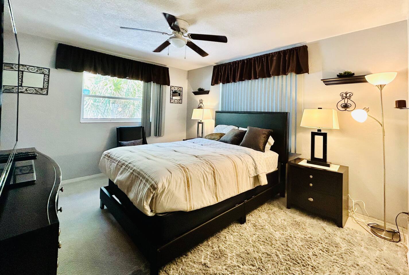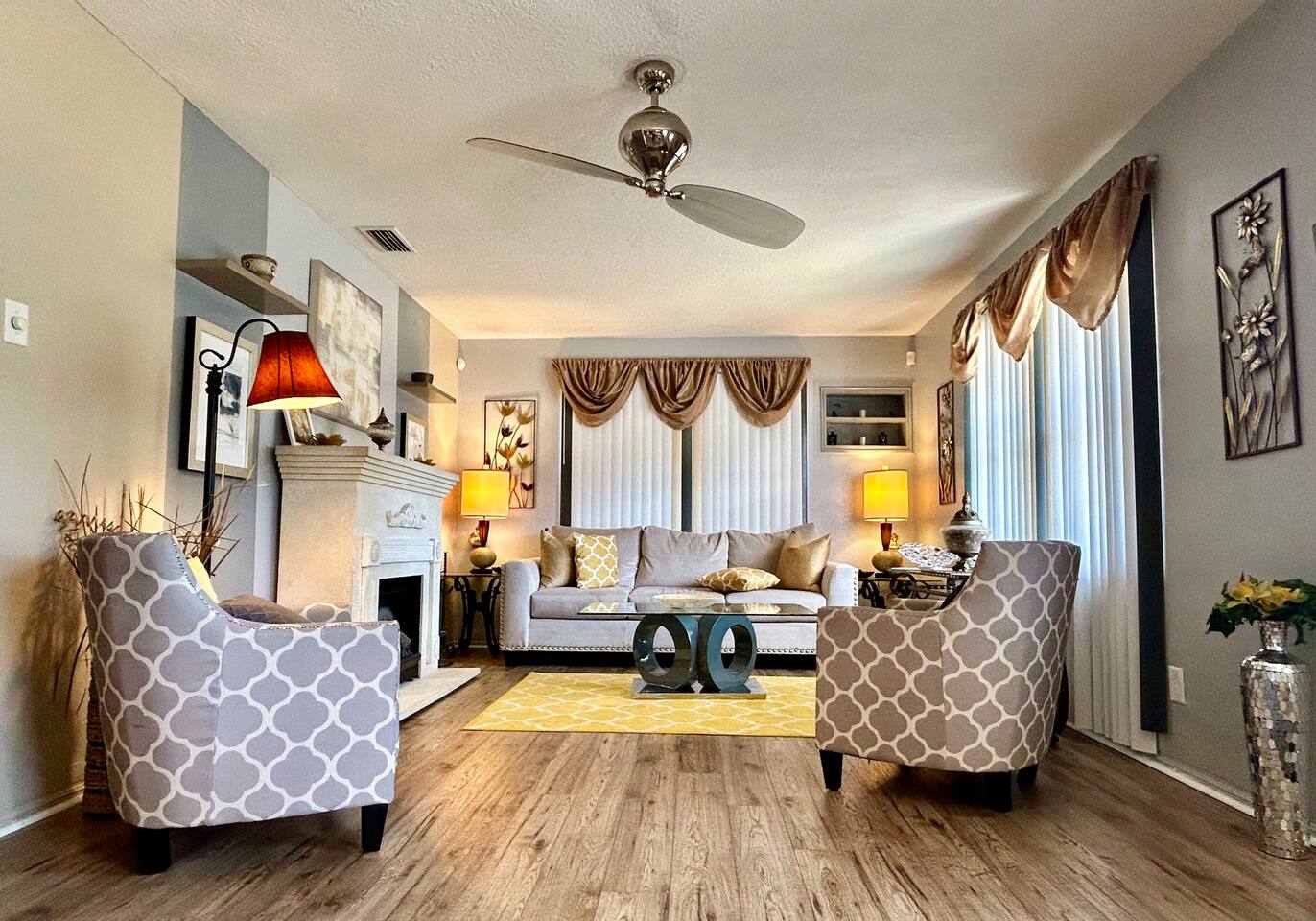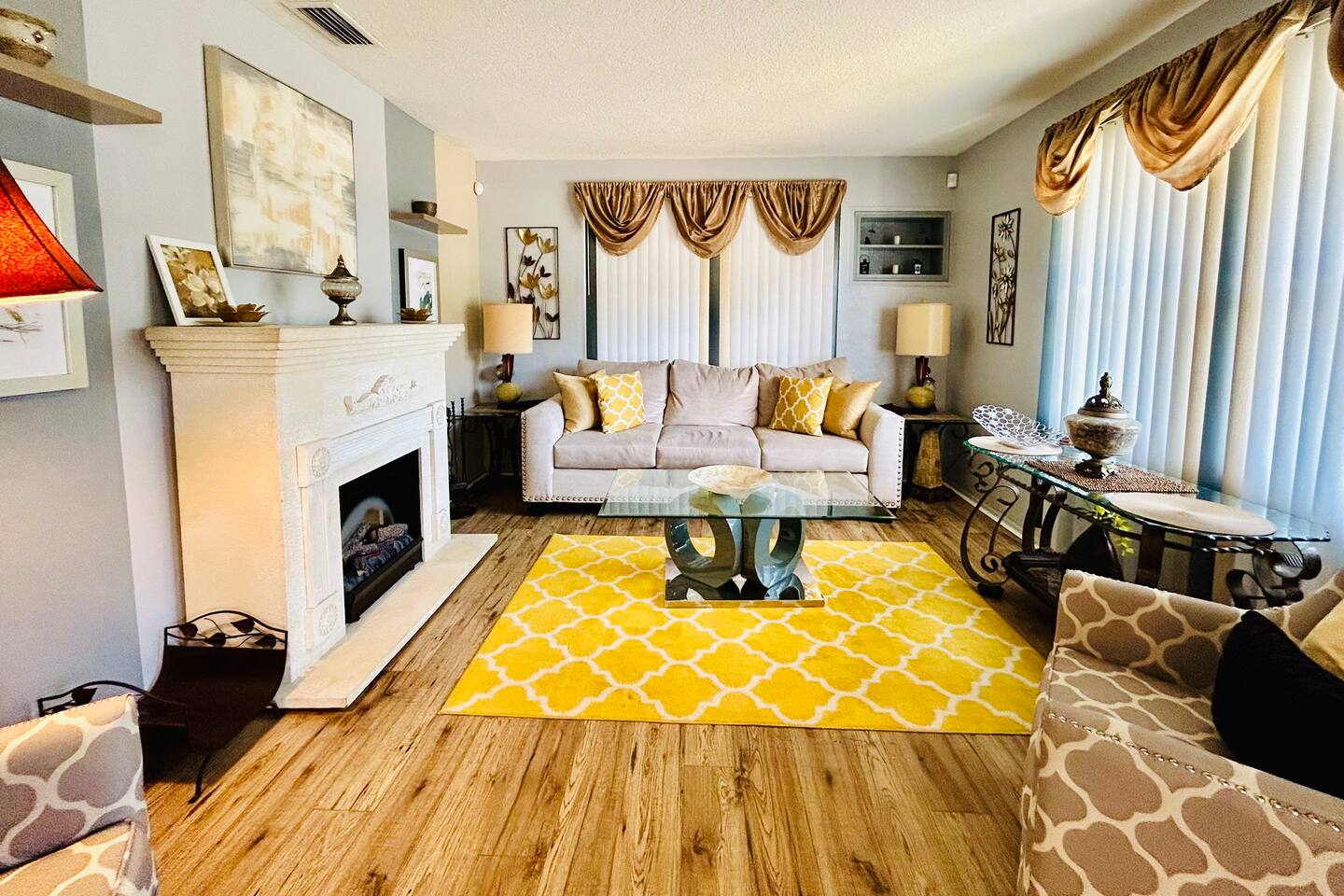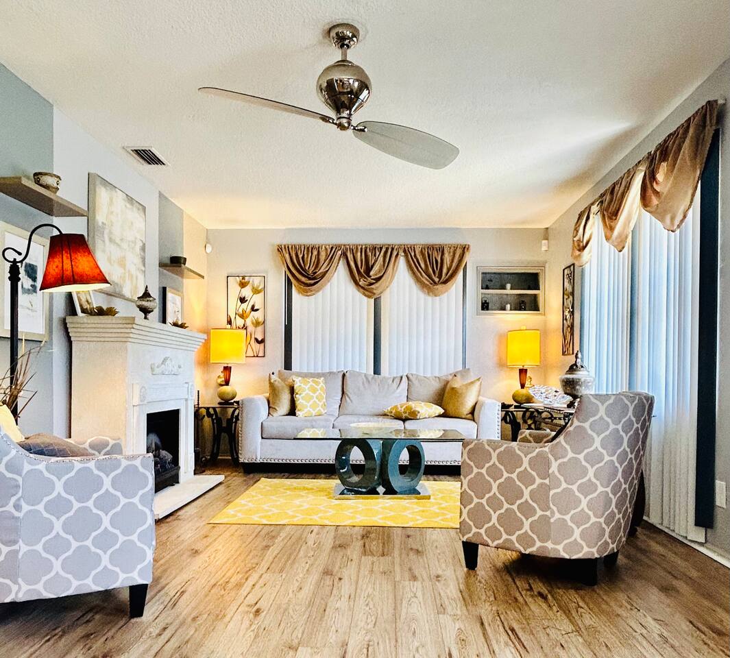 * ENJOY YOUR STAY BUT PLEASE RESPECT THE NEIGHBORS: DISTURBANCES AFTER 10:00PM CAN RESULT IN AN EARLY TERMINATION OF YOUR STAY WITH NO REFUND * • Pets are not allowed. • No smoking is allowed in the house or backyard. • Strictly No parties or events are allowed • No candles, no diffuser, no scented oils, no incense, or any plug-ins allowed. • No unregistered guests are allowed. • No illegal substances are allowed on the premises. • Please don't eat/drink in beds this leads to irreversible stains. Claim will be made. • Put all your trash bags in the trash bin • Washer & Dryer: To be used for your personal clothes only. • The use of Glitter/Confetti will lead to an extra cleaning fee • Please note that an extra charge will be claimed for each remote loss. • Please take care of the furnishings. Claims will be made. • Complimentary and starting basic essentials • Avoid Damage: Please treat all belongings like you would your own. Charges will apply. • Please dial 911 first in case of an emergency, then call us. • Please respect check-in and check-out times. No overstaying without prior permission and payment. • Please do not remove any mail in the mailbox if any. • No mails or packages to be sent to the property. We will have to discard them if any. • We provide a BBQ. Guest will not get refunded if any unexpected malfunction or if gas is emptied. We provide a starter quantity. Guest will have to fill it if they need more. • Trailers/Boat are not allowed on the driveway or on the streets of this community. • Please avoid parking on the grass as it is an HOA violation. • Lawn Care: Scheduled bi-weekly. They will not knock on your door to notify you of their presence or take permission. • Please do not open the garage mechanical door nor park your vehicle inside. • Mining Bitcoin or other cryptocurrencies is prohibited. Claim will be made. *There will be an inspection for quality and safety purposes conducted by a member of our team. If it happens to fall during your stay, we will notify you in advance. Guest presence is not mandatory during the inspection but inspection may be. Guest understands and agrees to access. *Please note that we cannot be held responsible for any water or electricity outages caused by the city. We will do our best to assist you during these circumstances, but please understand that it is beyond our control. As such, we regret to inform you that we cannot provide refunds for any inconveniences caused by such outages. *Right of Access: Guest understands, acknowledges and agrees upon confirming their booking that the manager/technician of the property will access (with or without your presence) the property for purpose of inspection, any maintenance requests from guests or other circumstance when deemed necessary with reasonable notification by one/all or any text, message, call, through booking platform to the guest for purposes of ensuring the safety and security of the property. Thank you for your understanding.