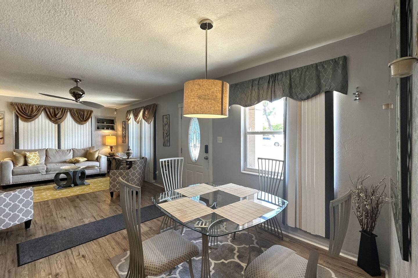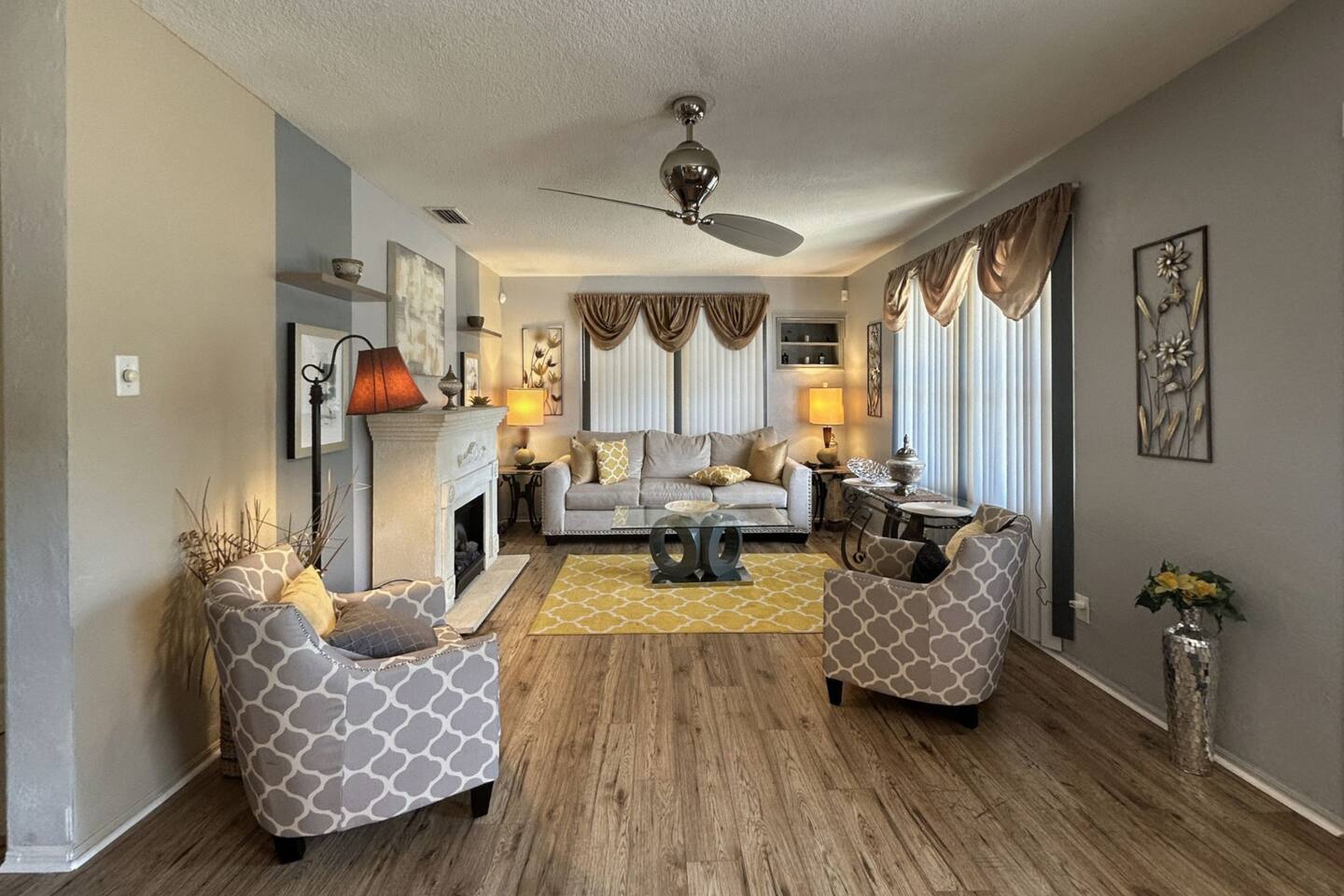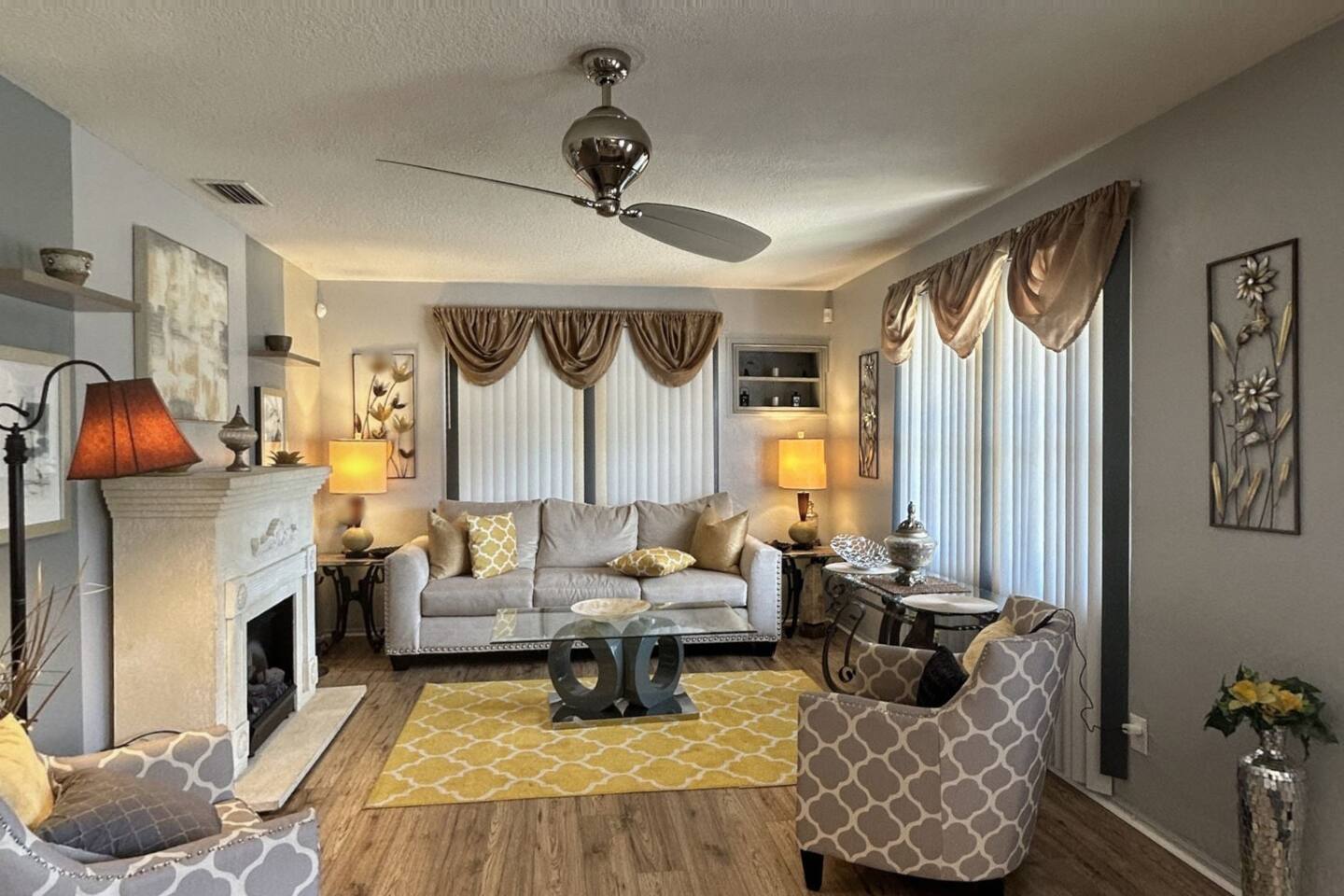 * ENJOY YOUR STAY BUT PLEASE RESPECT THE NEIGHBORS: DISTURBANCES AFTER 10:00PM CAN RESULT IN AN EARLY TERMINATION OF YOUR STAY WITH NO REFUND * • Pets are not allowed. • No smoking is allowed in the house or backyard. • Strictly No parties or events are allowed • No candles, no diffuser, no scented oils, no incense, or any plug-ins allowed. • No unregistered guests are allowed. • No illegal substances are allowed on the premises. • Please don't eat/drink in beds this leads to irreversible stains. Claim will be made. • Put all your trash bags in the trash bin • Washer & Dryer: To be used for your personal clothes only. • The use of Glitter/Confetti will lead to an extra cleaning fee • Please note that an extra charge will be claimed for each remote loss. • Please take care of the furnishings. Claims will be made. • Complimentary and starting basic essentials • Avoid Damage: Please treat all belongings like you would your own. Charges will apply. • Please dial 911 first in case of an emergency, then call us. • Please respect check-in and check-out times. No overstaying without prior permission and payment. • Please do not remove any mail in the mailbox if any. • No mails or packages to be sent to the property. We will have to discard them if any. • We provide a BBQ. Guest will not get refunded if any unexpected malfunction or if gas is emptied. We provide a starter quantity. Guest will have to fill it if they need more. • Trailers/Boat are not allowed on the driveway or on the streets of this community. • Please avoid parking on the grass as it is an HOA violation. • Lawn Care: Scheduled bi-weekly. They will not knock on your door to notify you of their presence or take permission. • Please do not open the garage mechanical door nor park your vehicle inside. • Mining Bitcoin or other cryptocurrencies is prohibited. Claim will be made. *There will be an inspection for quality and safety purposes conducted by a member of our team. If it happens to fall during your stay, we will notify you in advance. Guest presence is not mandatory during the inspection but inspection may be. Guest understands and agrees to access. *Please note that we cannot be held responsible for any water or electricity outages caused by the city. We will do our best to assist you during these circumstances, but please understand that it is beyond our control. As such, we regret to inform you that we cannot provide refunds for any inconveniences caused by such outages. *Right of Access: Guest understands, acknowledges and agrees upon confirming their booking that the manager/technician of the property will access (with or without your presence) the property for purpose of inspection, any maintenance requests from guests or other circumstance when deemed necessary with reasonable notification by one/all or any text, message, call, through booking platform to the guest for purposes of ensuring the safety and security of the property. Thank you for your understanding.
