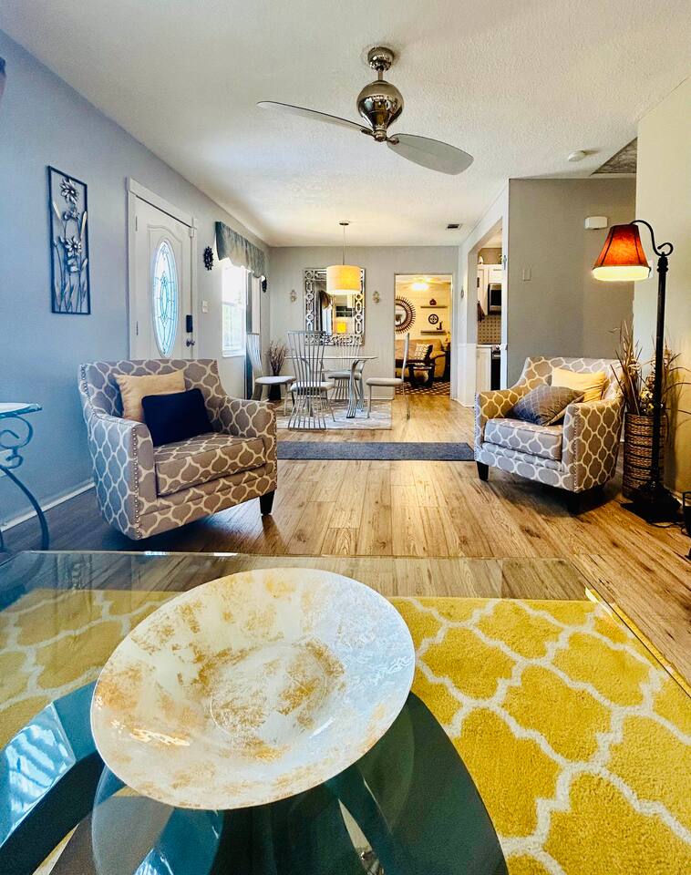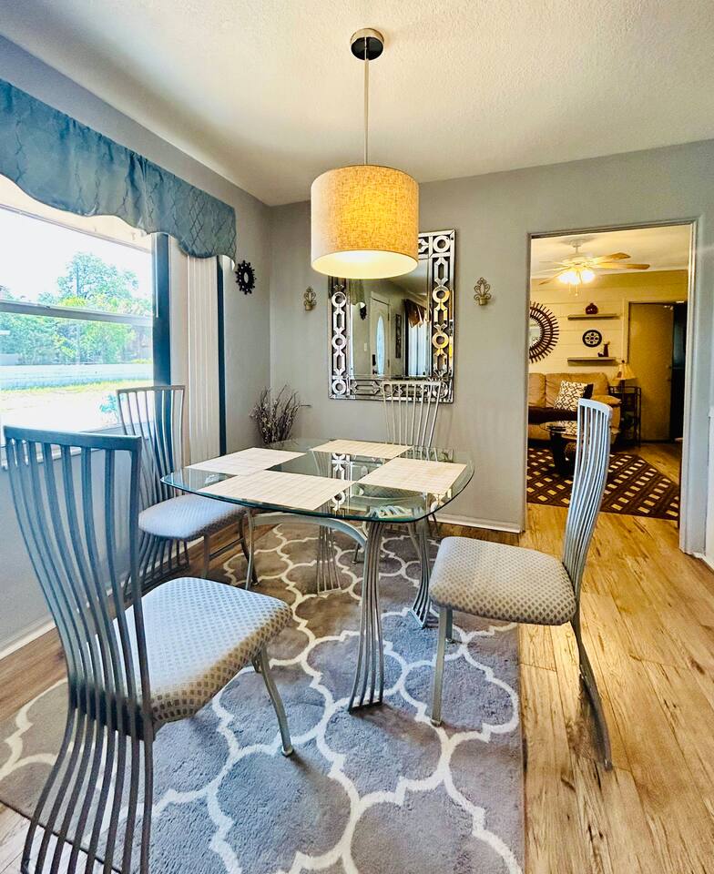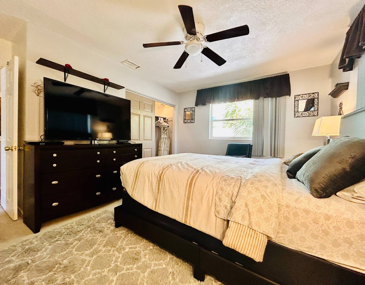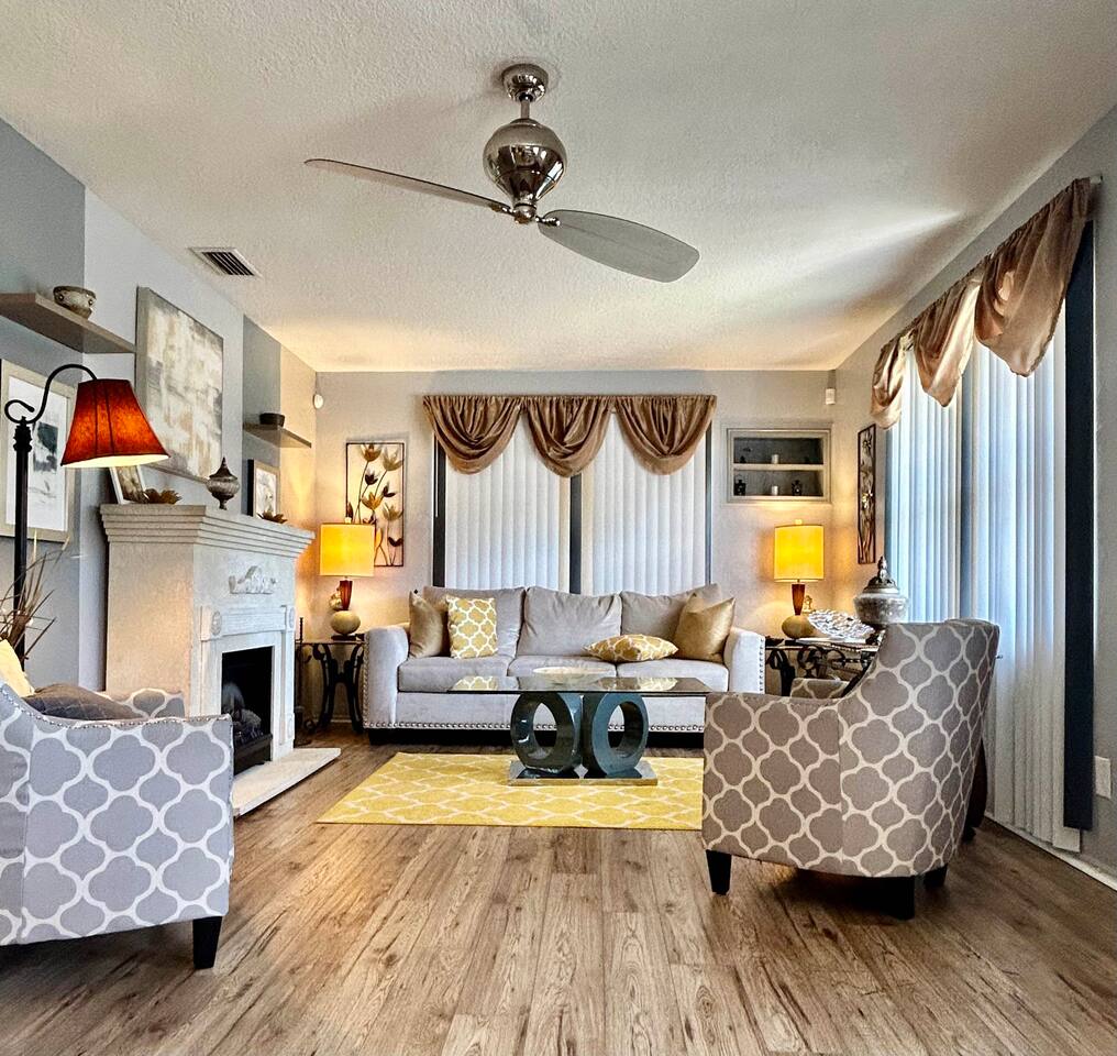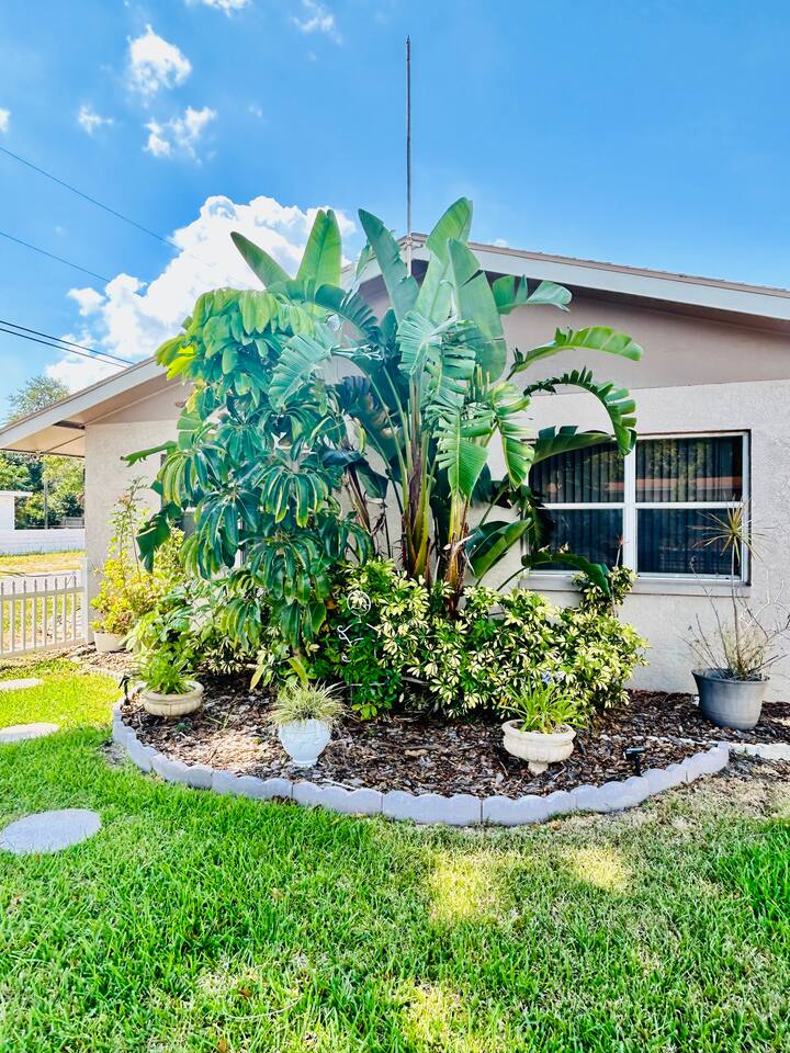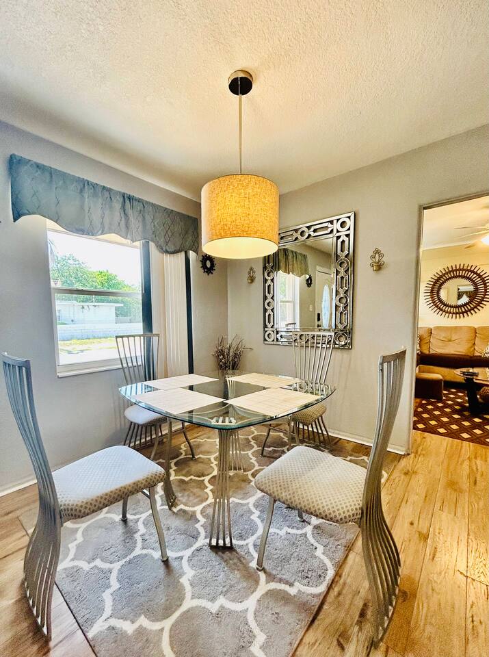 Experience a finely crafted interior that seamlessly merges functionality with style. Offering two bedrooms and two bathrooms, there's abundant space for everyone to unwind and enjoy some downtime. Welcome to our spacious open concept living and dining area, where comfort meets style. The cozy fireplace exudes warmth, inviting you to relax on the plush sofa after a long day. Whether you're gathered around the dining table for a meal or simply lounging with loved ones, the ambiance is perfect for every moment. But wait, there's more—step into our second living area or family room, where comfort and entertainment converge. Sink into the plush sofa, bask in the gentle breeze of the ceiling fan, and gather around the TV atop the sleek center table. With every detail carefully curated, this space is designed for relaxation and enjoyment, making it the perfect retreat for quality time with loved ones. In our kitchen, everything you need for cooking is right at your fingertips! We have a refrigerator, oven/stove, dishwasher, microwave, blender, coffee maker, toaster, and all the utensils and cookware you'll need. The master bedroom includes a queen-size bed, a TV, a dresser, shelves, a nightstand with a bedside lamp, a closet and a window unit AC for added comfort during warmer weather. It also boasts an exclusive ensuite bathroom and direct access to the backyard. In the guest bedroom features a comfortable queen-size bed, a TV, a dresser, shelves, a nightstand with a bedside lamp, a ceiling fan, a comfy chair, and a convenient closet for storage. The guest bathroom is equipped with a vanity sink with mirror, a toilet bowl, a shower-tub combination for your convenience, as well as a hairdryer. Meanwhile, the ensuite bathroom features a vanity sink with a mirror, a toilet bowl, and a standup shower. To enhance your stay, we provide fresh towels, ensuring a refreshing beginning to your day. We've thoughtfully integrated a convenient gas BBQ station into our backyard. It's the ideal place to indulge in delicious grilled delicacies while soaking up the sun-kissed ambiance. Whether you're enjoying juicy burgers or savory kebabs, our outdoor grill beckons you to relax, unwind, and savor every bite. Embrace the spirit of outdoor dining as you enhance your backyard gatherings in our welcoming outdoor haven. Our property boasts a washer and dryer conveniently situated in the garage, provided at no extra cost. Moreover, there are two parking spaces available in the driveway for our guests' convenience. This is a non-smoking property, and this home has Wi-Fi. We provide a starter supply of liquid soap, dish soap, dishwasher soap, paper towel, toilet paper, and garbage bags. About the Area: St-Petersburg presents a fusion of natural wonders, cultural marvels, and outdoor escapades. Whether you're an admirer of nature, a history aficionado, or just in pursuit of serenity, this vibrant locale caters to all tastes. Immerse yourself in the serene ambiance of Boyd Hill Nature Preserve. Wander through extensive trails weaving amidst verdant pine flatwoods, tranquil swamp woodlands, and placid lakes. Keep your senses alert for encounters with a myriad of wildlife, from alligators to birds and butterflies. Just a brief journey away lies the pristine Gulf Coast beaches where you can bask in the sun, frolic in the turquoise waters, or leisurely stroll along sandy expanses. Clearwater Beach, St. Pete Beach, and Madeira Beach beckon with their allure. Step into a tropical haven at Sunken Gardens, where exotic flora, cascading waterfalls, and vibrant blooms create a captivating ambiance. This historic botanical sanctuary offers a serene escape from urban hustle. Indulge your artistic inclinations at the Museum of Fine Arts nestled in downtown St. Petersburg. Traverse a rich tapestry of over 20,000 artworks spanning antiquity to modernity, including paintings, sculptures, and decorative arts. Throughout the calendar, St-Petersburg hosts an array of cultural fiestas and festivals celebrating art, music, gastronomy, and more. From the St. Pete Wine & Food Festival to the Mainsail Arts Festival, the calendar brims with excitement. Whether you seek outdoor adventures, cultural immersion, or simply a tranquil retreat, St- Petersburg invites you to explore its diverse array of attractions and forge enduring memories along Florida's enchanting Gulf Coast.