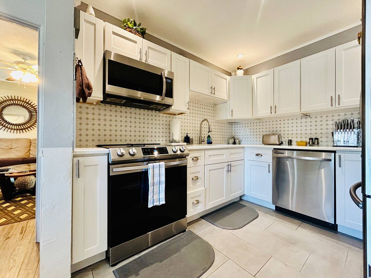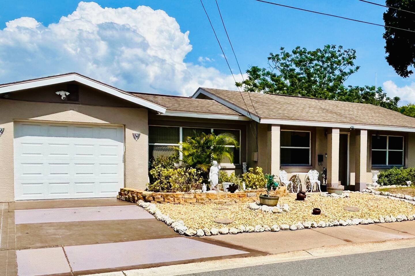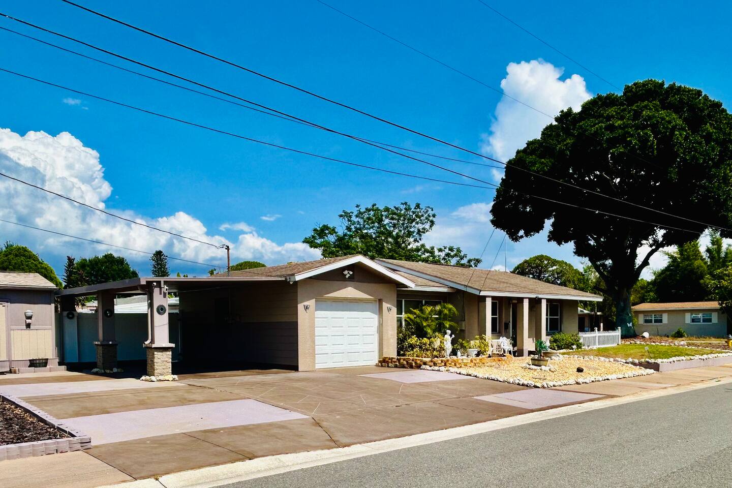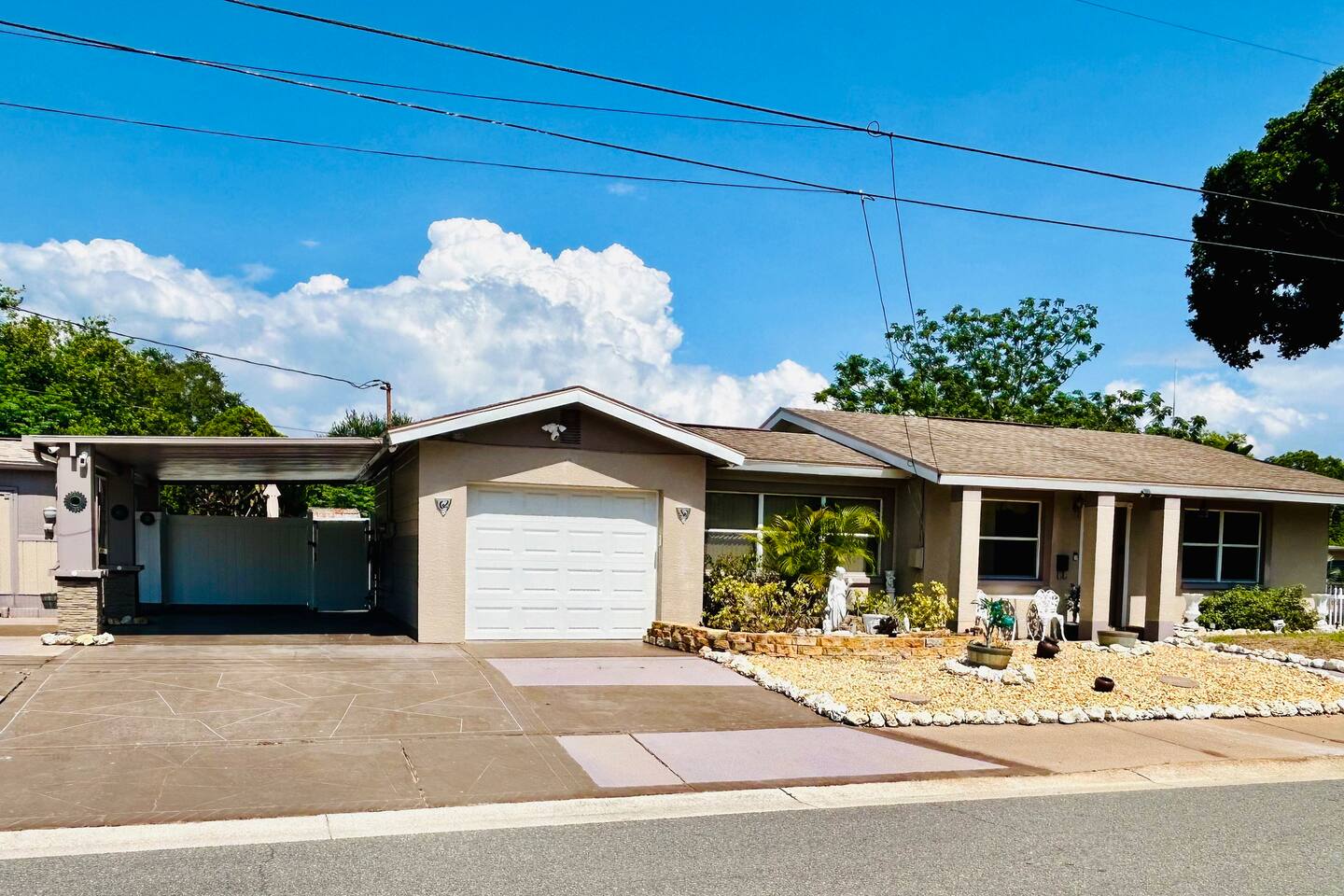 Experience a finely crafted interior that seamlessly merges functionality with style. Offering two bedrooms and two bathrooms, there's abundant space for everyone to unwind and enjoy some downtime. Welcome to our spacious open concept living and dining area, where comfort meets style. The cozy fireplace exudes warmth, inviting you to relax on the plush sofa after a long day. Whether you're gathered around the dining table for a meal or simply lounging with loved ones, the ambiance is perfect for every moment. But wait, there's more—step into our second living area or family room, where comfort and entertainment converge. Sink into the plush sofa, bask in the gentle breeze of the ceiling fan, and gather around the TV atop the sleek center table. With every detail carefully curated, this space is designed for relaxation and enjoyment, making it the perfect retreat for quality time with loved ones. In our kitchen, everything you need for cooking is right at your fingertips! We have a refrigerator, oven/stove, dishwasher, microwave, blender, coffee maker, toaster, and all the utensils and cookware you'll need. The master bedroom includes a queen-size bed, a TV, a dresser, shelves, a nightstand with a bedside lamp, a closet and a window unit AC for added comfort during warmer weather. It also boasts an exclusive ensuite bathroom and direct access to the backyard. In the guest bedroom features a comfortable queen-size bed, a TV, a dresser, shelves, a nightstand with a bedside lamp, a ceiling fan, a comfy chair, and a convenient closet for storage. The guest bathroom is equipped with a vanity sink with mirror, a toilet bowl, a shower-tub combination for your convenience, as well as a hairdryer. Meanwhile, the ensuite bathroom features a vanity sink with a mirror, a toilet bowl, and a standup shower. To enhance your stay, we provide fresh towels, ensuring a refreshing beginning to your day. We've thoughtfully integrated a convenient gas BBQ station into our backyard. It's the ideal place to indulge in delicious grilled delicacies while soaking up the sun-kissed ambiance. Whether you're enjoying juicy burgers or savory kebabs, our outdoor grill beckons you to relax, unwind, and savor every bite. Embrace the spirit of outdoor dining as you enhance your backyard gatherings in our welcoming outdoor haven. Our property boasts a washer and dryer conveniently situated in the garage, provided at no extra cost. Moreover, there are two parking spaces available in the driveway for our guests' convenience. This is a non-smoking property, and this home has Wi-Fi. We provide a starter supply of liquid soap, dish soap, dishwasher soap, paper towel, toilet paper, and garbage bags. About the Area: St-Petersburg presents a fusion of natural wonders, cultural marvels, and outdoor escapades. Whether you're an admirer of nature, a history aficionado, or just in pursuit of serenity, this vibrant locale caters to all tastes. Immerse yourself in the serene ambiance of Boyd Hill Nature Preserve. Wander through extensive trails weaving amidst verdant pine flatwoods, tranquil swamp woodlands, and placid lakes. Keep your senses alert for encounters with a myriad of wildlife, from alligators to birds and butterflies. Just a brief journey away lies the pristine Gulf Coast beaches where you can bask in the sun, frolic in the turquoise waters, or leisurely stroll along sandy expanses. Clearwater Beach, St. Pete Beach, and Madeira Beach beckon with their allure. Step into a tropical haven at Sunken Gardens, where exotic flora, cascading waterfalls, and vibrant blooms create a captivating ambiance. This historic botanical sanctuary offers a serene escape from urban hustle. Indulge your artistic inclinations at the Museum of Fine Arts nestled in downtown St. Petersburg. Traverse a rich tapestry of over 20,000 artworks spanning antiquity to modernity, including paintings, sculptures, and decorative arts. Throughout the calendar, St-Petersburg hosts an array of cultural fiestas and festivals celebrating art, music, gastronomy, and more. From the St. Pete Wine & Food Festival to the Mainsail Arts Festival, the calendar brims with excitement. Whether you seek outdoor adventures, cultural immersion, or simply a tranquil retreat, St- Petersburg invites you to explore its diverse array of attractions and forge enduring memories along Florida's enchanting Gulf Coast.