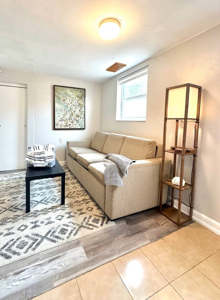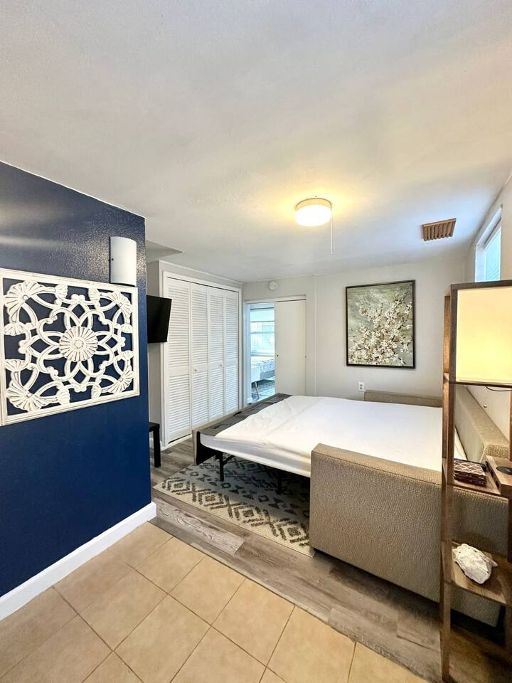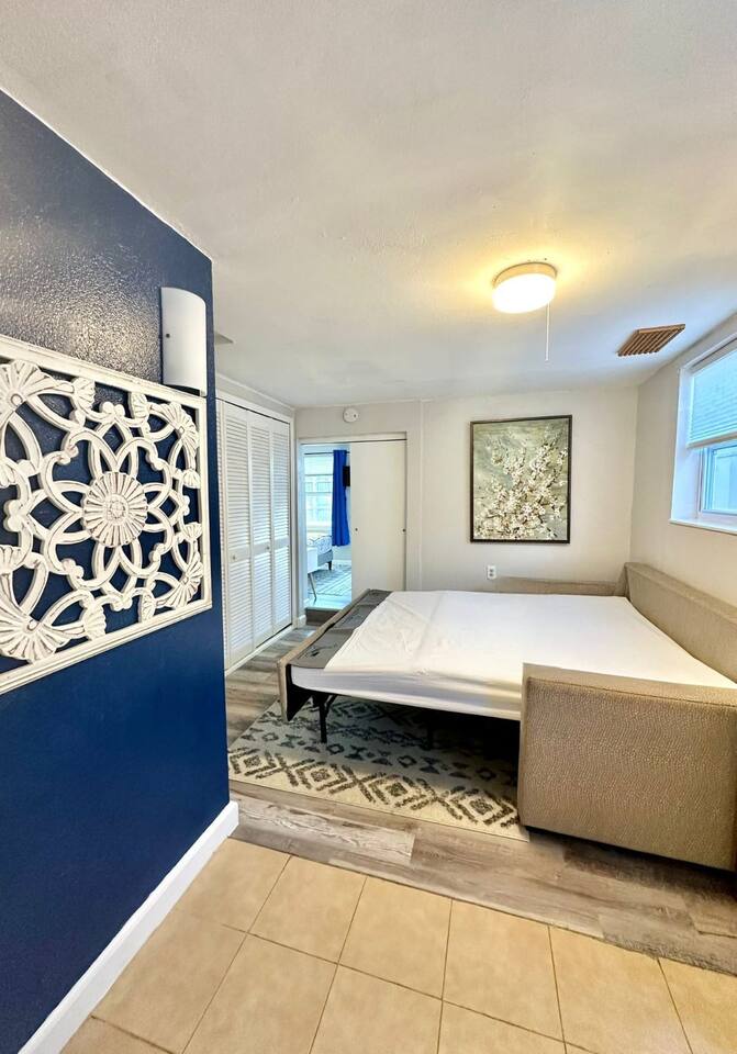About the Space This inviting home features 1 cozy bedroom, queen size sofa bed and 1 bathroom, comfortably accommodating up to 4 guests. The bedroom is nicely decorated and furnished with a queen size bed, murphy desk with a chair, closet, and a TV. Well appointed bathroom that features a stand-up shower, vanity and toilet. The interior is tastefully decorated with coastal accents, creating a warm and inviting atmosphere for your stay. The living room boasts a comfortable queen size sofa bed, providing additional sleeping space for guests. Within this tropical haven, you'll find the kitchen, although compact, is fully equipped to meet your culinary needs. While lacking a stove, it includes a versatile toaster oven with baking and air frying functions, along with a ceramic cooktop featuring two burners. Other kitchen amenities comprise a full-size fridge with a small freezer, a microwave oven, a toaster, a waffle iron, pots and pans, utensils, and a dishwasher for effortless meal preparation and cleanup. A washer and dryer (shared with other guests), wireless internet, 1 car parking space in the driveway are also included. This is a non-smoking house. Linens, towels, and pillows are provided for the comfort of our guests. Experience the comfort of our backyard, with table and chairs, perfect for indulging in al fresco dining or simply unwinding in a relaxed lounging atmosphere. We provide a starter supply of liquid soap, dish soap, dishwasher soap, paper towel, toilet paper, and garbage bags. About the Area Immerse yourself in the beauty of Seminole's scenic waterfront, just steps away from your doorstep. Take leisurely strolls along the shores of Lake Seminole, or embark on exciting water adventures right from the private dock. A short drive brings you to the pristine Gulf beaches, including the renowned Indian Rocks Beach and Redington Beach. Here, you can enjoy sugar-white sands and azure waters, perfect for sunbathing, swimming, and water sports. Nature enthusiasts will delight in the proximity to lush parks and outdoor spaces. Explore Boca Ciega Millennium Park, known for its nature trails and bird watching, or visit Helen S. Howarth Community Park for a serene and family-friendly atmosphere. Indulge your taste buds in the diverse culinary scene surrounding the area. Discover mouthwatering dishes at Miller's Ale House or savor home-cooked goodness at Mamas Kitchen. Additionally, explore the Seminole City Center for a mix of dining and shopping options. Uncover the rich cultural tapestry of the region by visiting the Alligator & Wildlife Discovery Center for a fascinating wildlife experience. Take a trip to John's Pass Village & Boardwalk for charming shops and dining, or enjoy family fun at the Treasure Island Fun Center. Experience the warm hospitality and community vibes that Seminole has to offer. Embrace the beauty, adventure, and local charm that make this area a truly memorable destination.